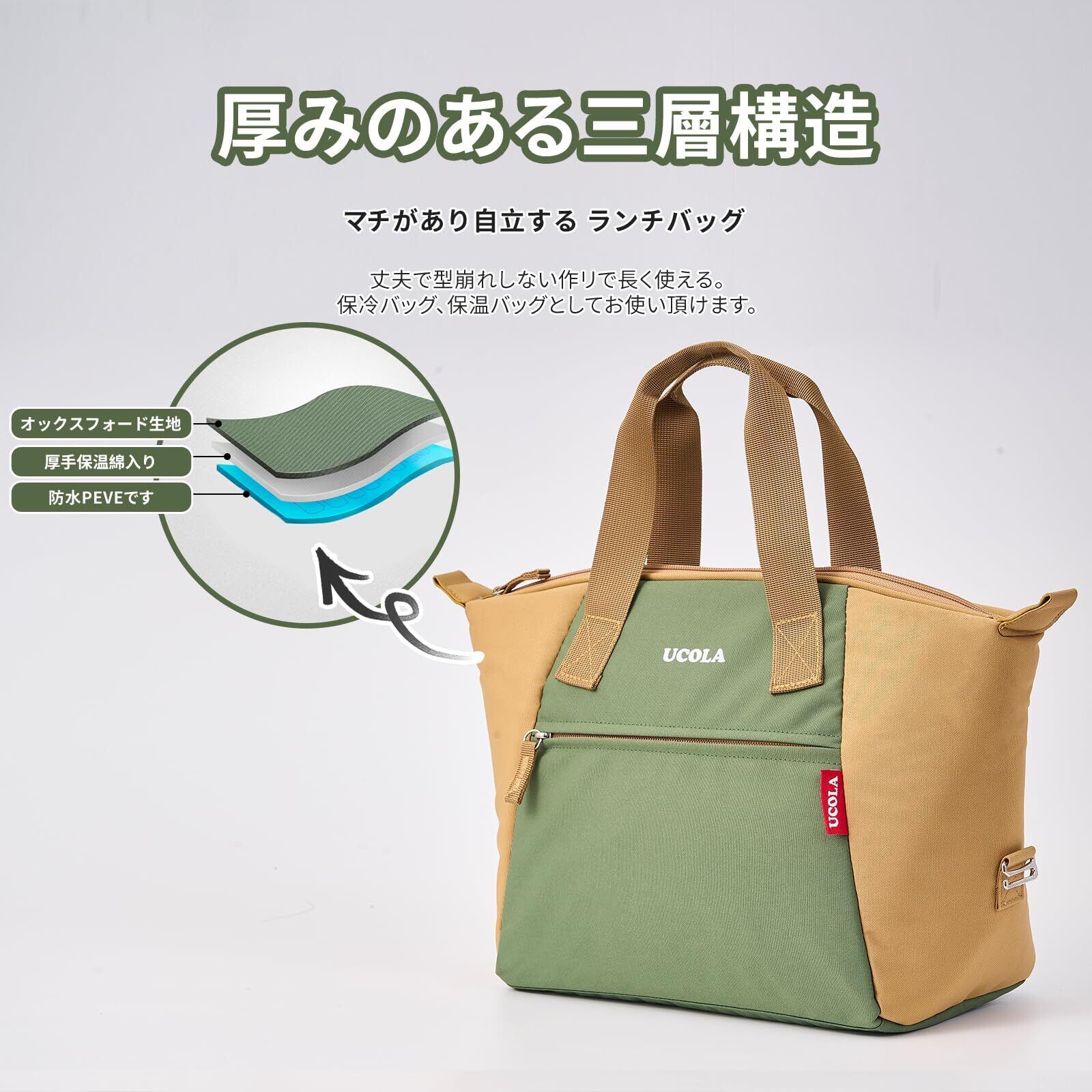 【保温・保冷機能付きランチバッグ】 内側はアルミホイル素材を採用し、厚みのある三層構造で優れた保温・保冷効果を実現。お弁当や飲み物を長時間新鮮に保ち、通勤・通学・ピクニック・アウトドアに最適です。