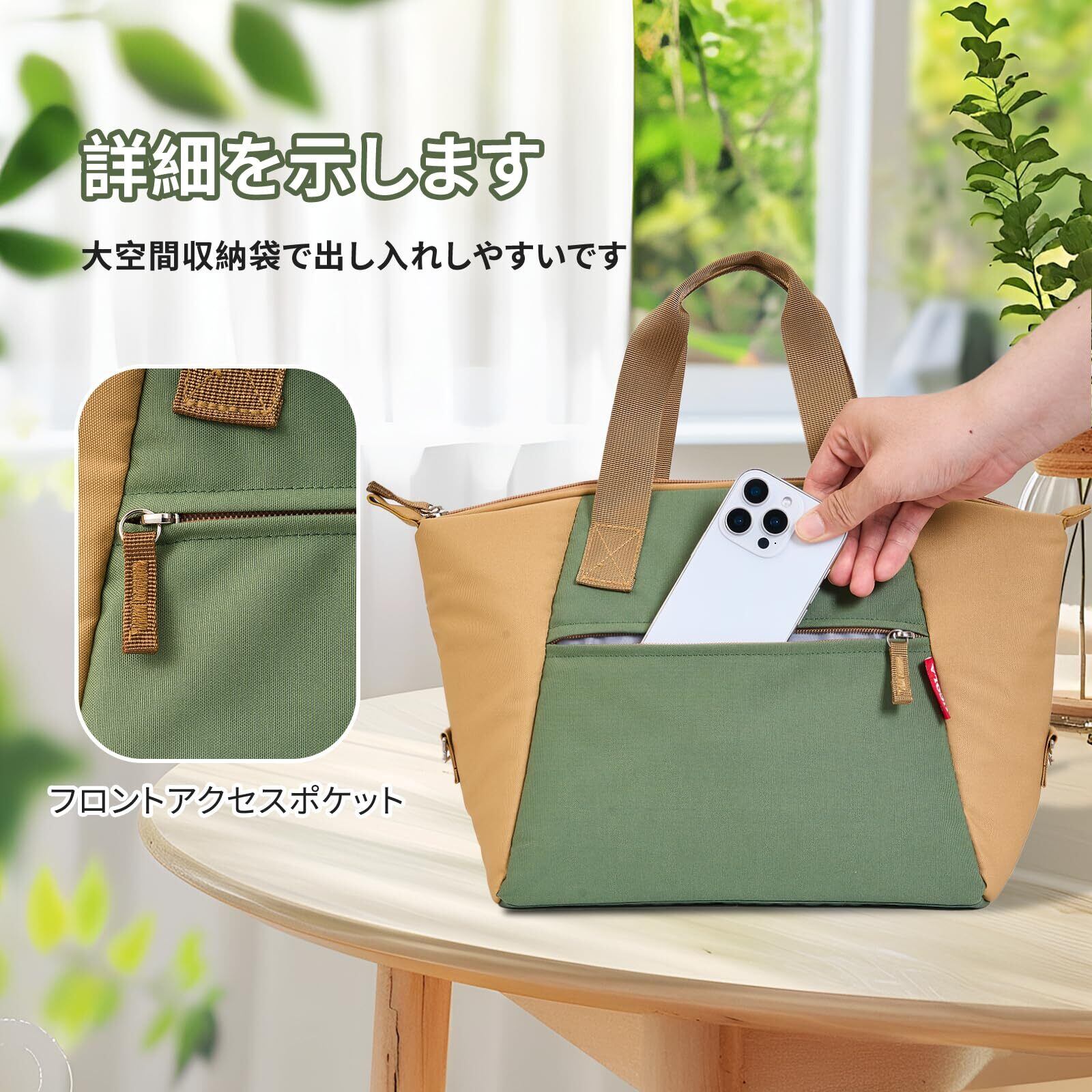 【シンプルでおしゃれなデザイン】 ナチュラルカラーとシンプルデザインで、男女兼用。通勤やオフィス、学校、旅行にも使いやすいスタイル。おしゃれな弁当バッグとしてギフトにもおすすめです。