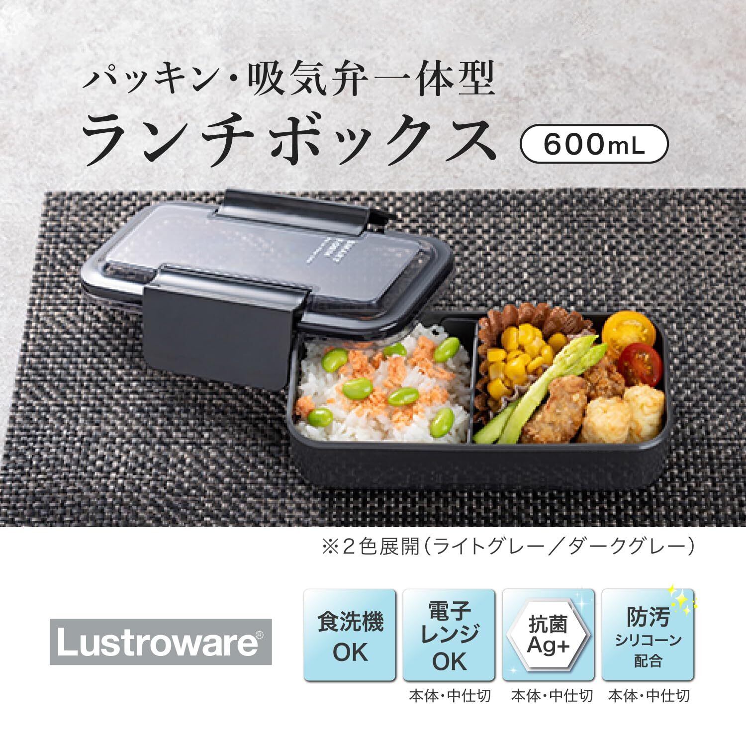 岩崎工業 ラストロウェア 弁当箱 イージーケア ランチボックススリム 男性 1段 600ml ライトグレー パッキン一体型 洗いやすい レンジ対応 食洗器対応 B-1491 LN