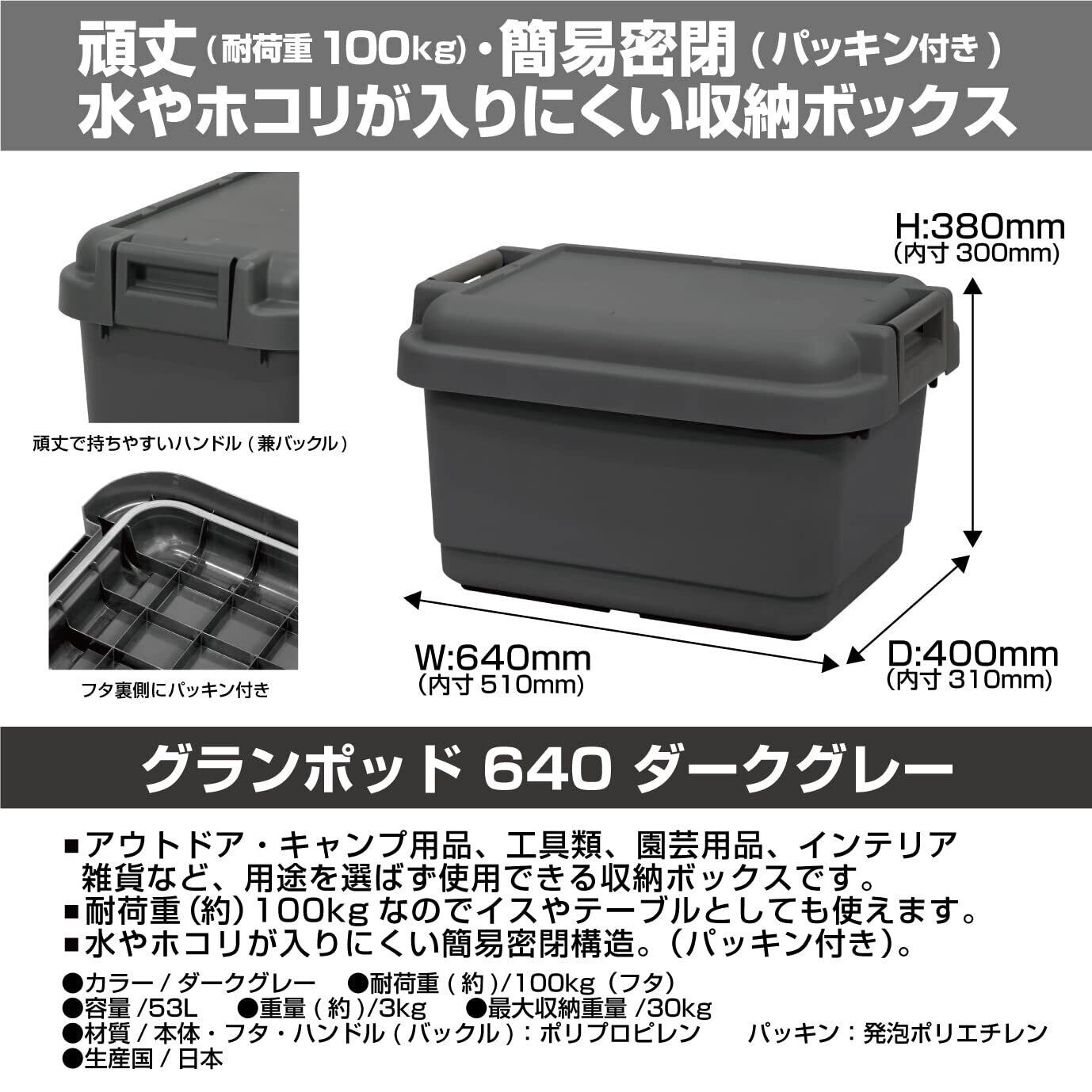 【 限定】JEJアステージ 収納ボックス 日本製 簡易密閉型 パッキン付き アウトドア キャンプ スツール 耐荷重100kg 積み重ね [グランポット 53L] ダークグレー 防災 幅64×奥行40×高さ38cm