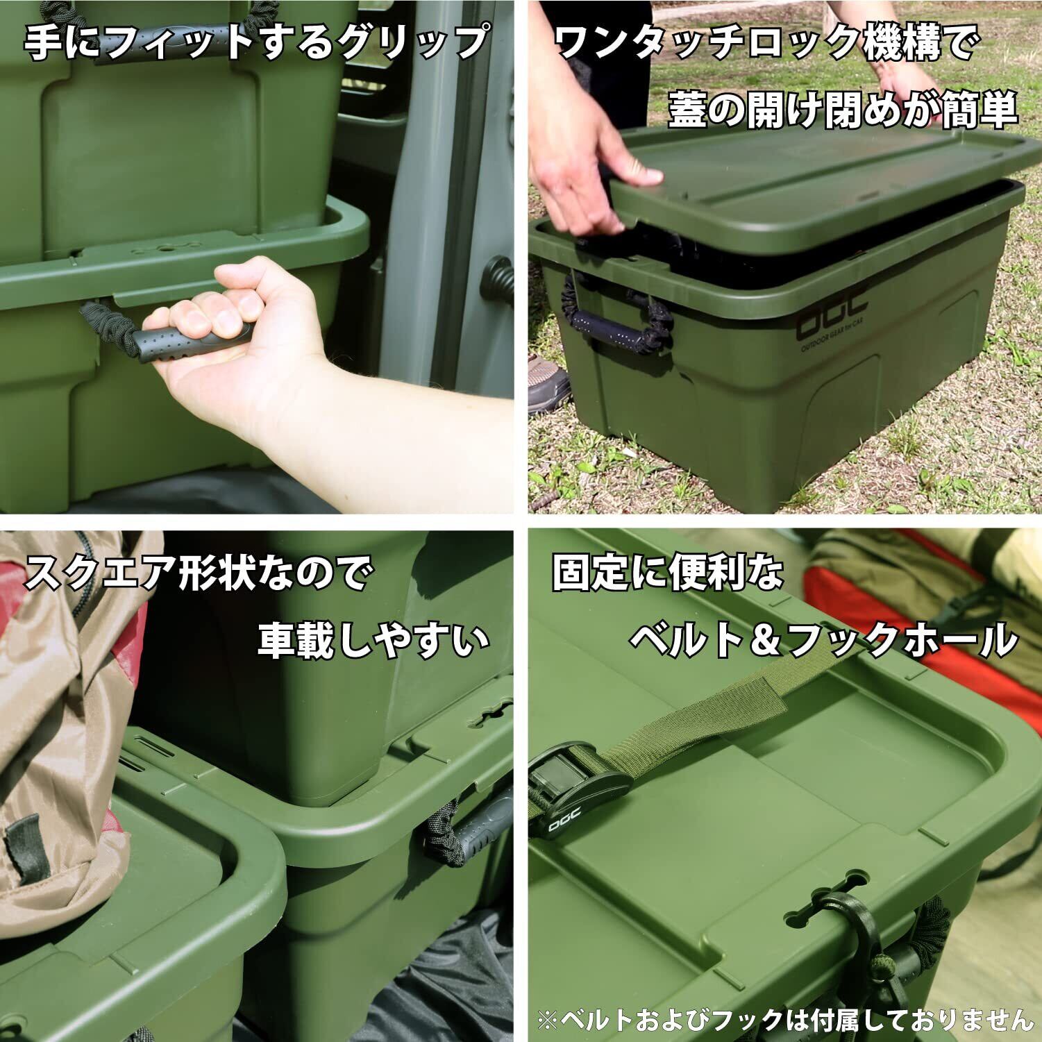 OGCカムバックㇽタイダウンベルトやバンジーコードと組み合わせてしっかり固定できる「タイダウンベルトホール」を装備。