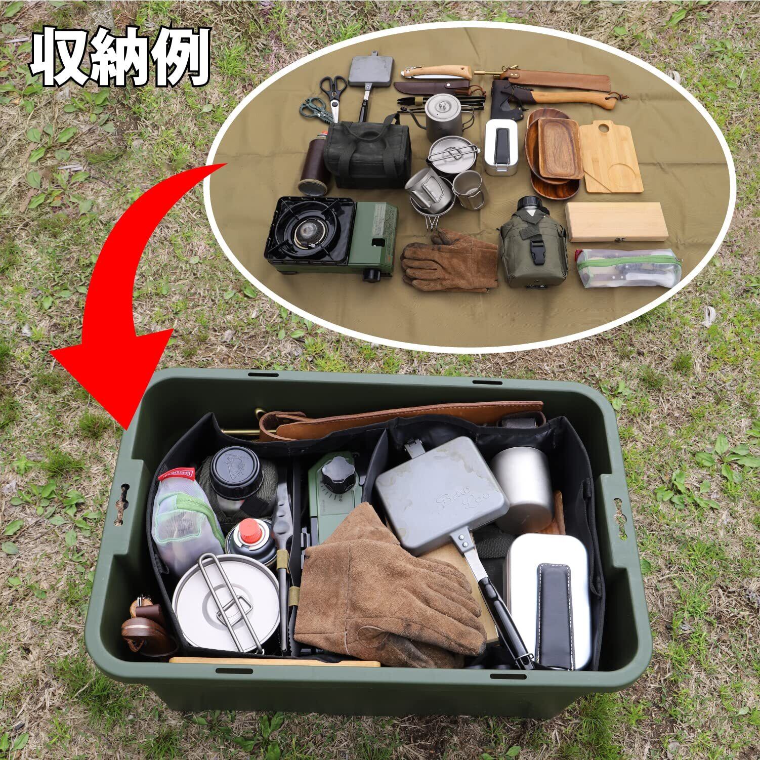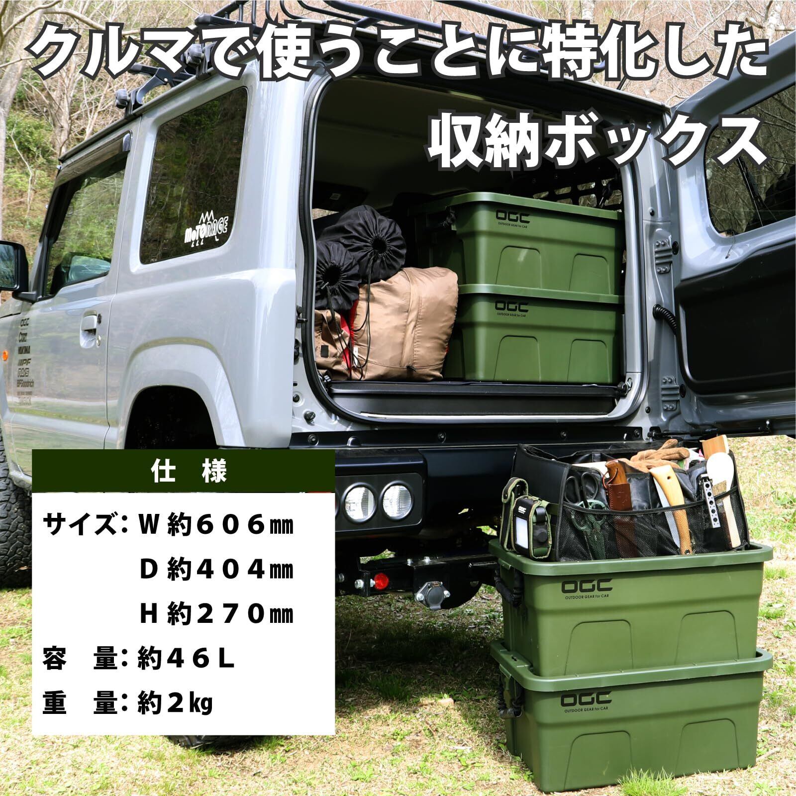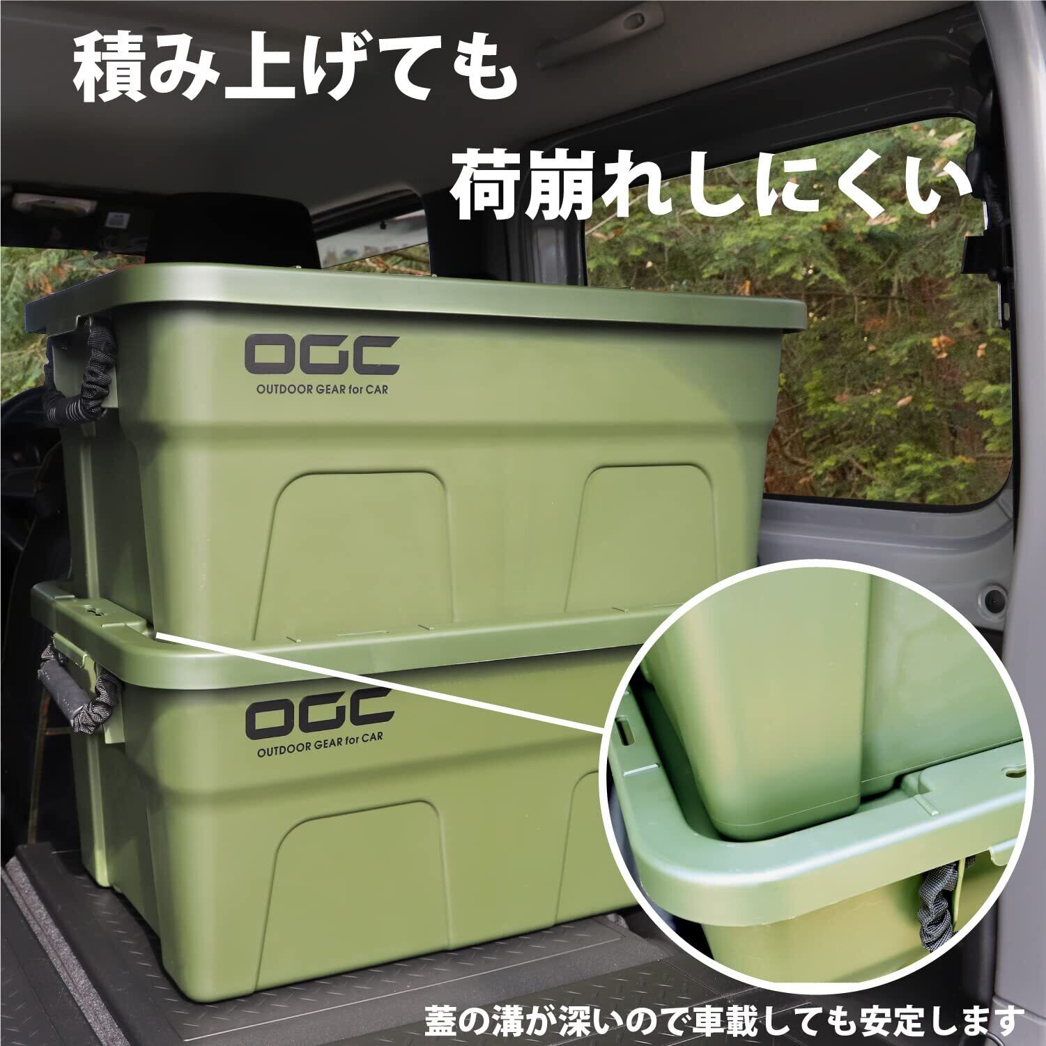 OGCソフトコンテナ(別売)がすっぽり収まる「BAG in BOX」コンセプト。組み合わせて使えば、アウトドアではソフトコンテナごと一度に荷物を出すことができ、使いたいギアを取り出しやすい。空のボックスは調理台やテーブル代わりにもなり、テントやチェアの袋などを収納しておける。