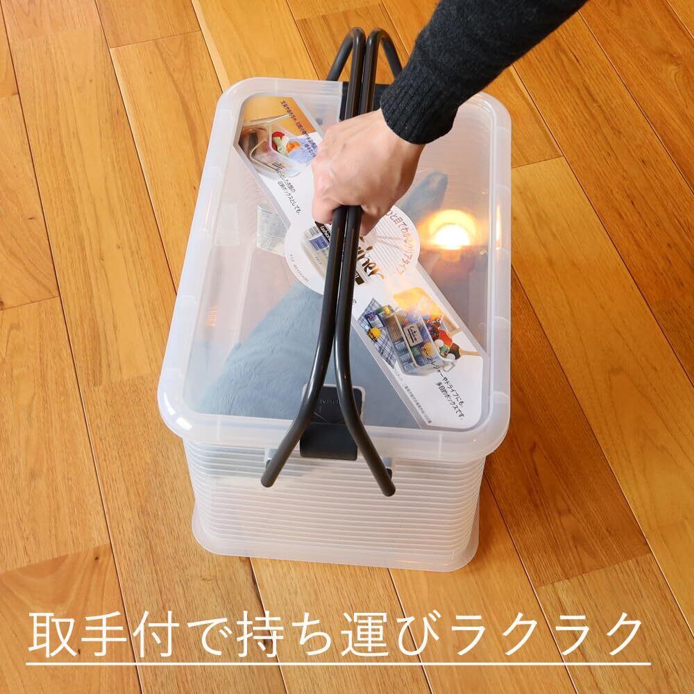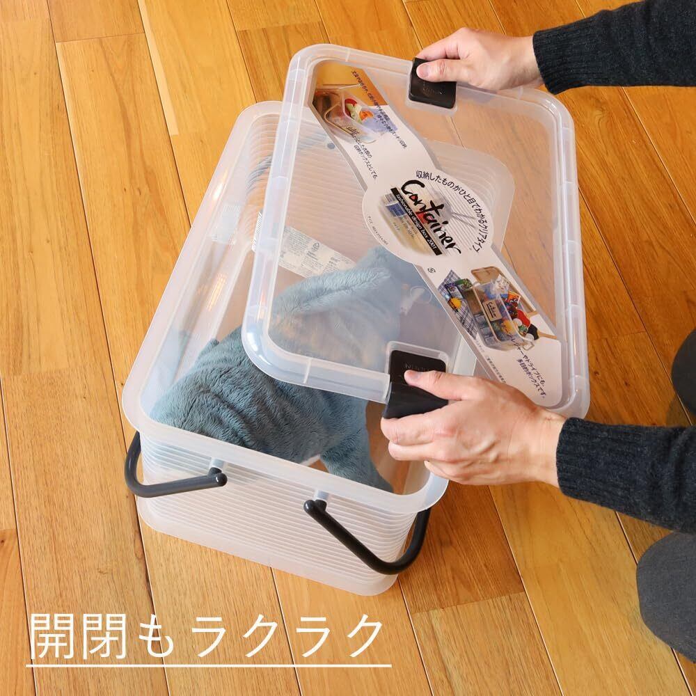 サンコープラスチック(SankoPlastic) 収納ケース コンテナークリア M ナチュラルブラック 日本製 幅38.0×奥行24.5×高さ22.2cm 容量:9.8L シンプル ボックス 蓋付 取手付 ハンドル 透明 整理 アウトドア レジャー 144362