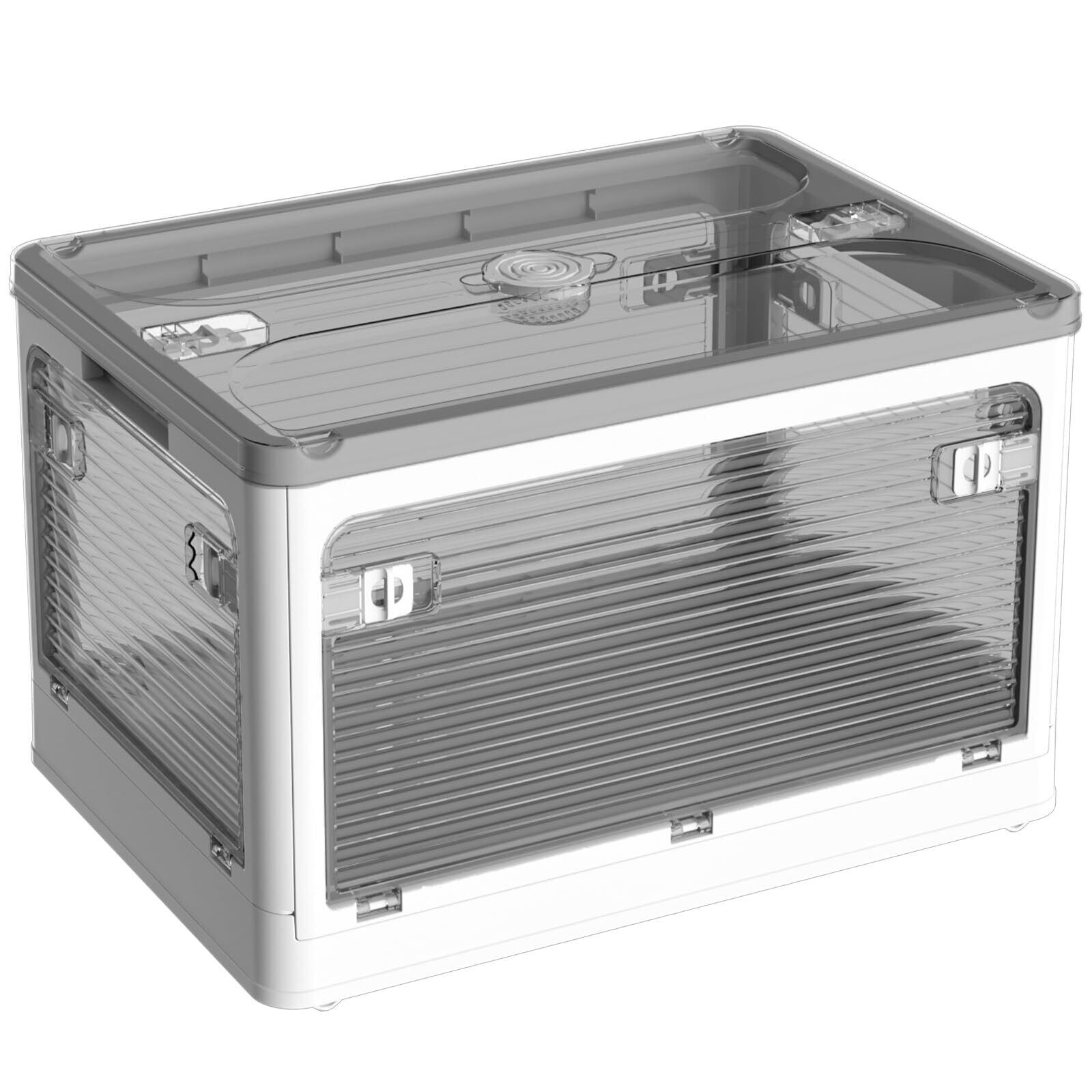 【折り畳み▪上に蓋/側面扉付き】収納箱界の大革新!使わない時に折りたたんで収納できます。スペースを取りません。側面四面も扉付き、収納にとても便利です。上にふた付き、物を入れやすい。蓋をロックできます。物を取るは側面扉から、ボックスを積み重ねる状態にも楽に物を取り出して、伝統的な収納ボックスに比べてもっと便利で、機能性が向上します。