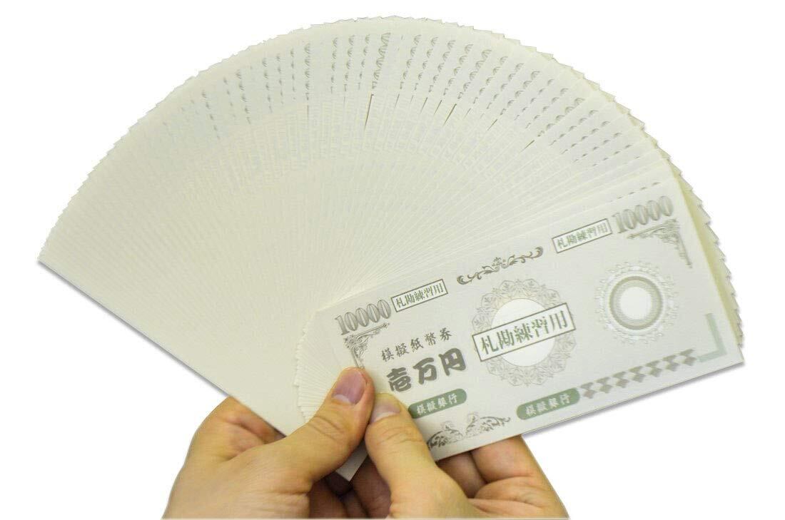 プロ用の札勘模擬紙幣100枚+メクール1個+紙帯2枚+手順書付です。