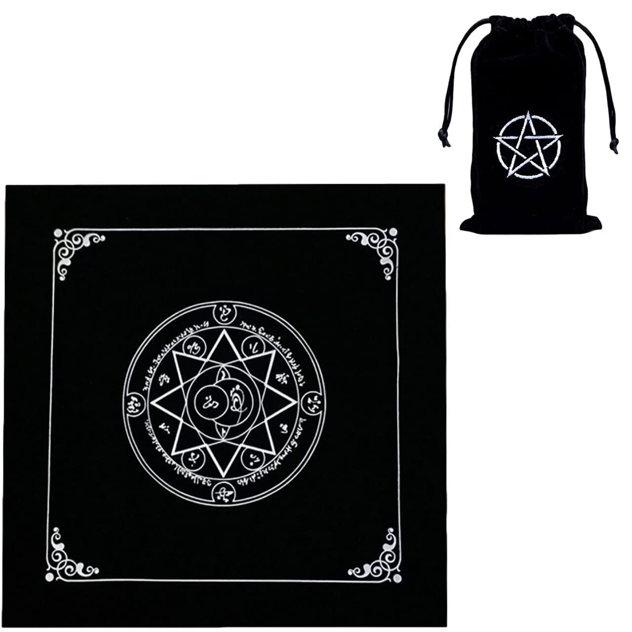 Copeflap タロットクロス ベルベット タロットカード 占い 敷物 ポーチ付き 50x50cm (黒(八芒星))
