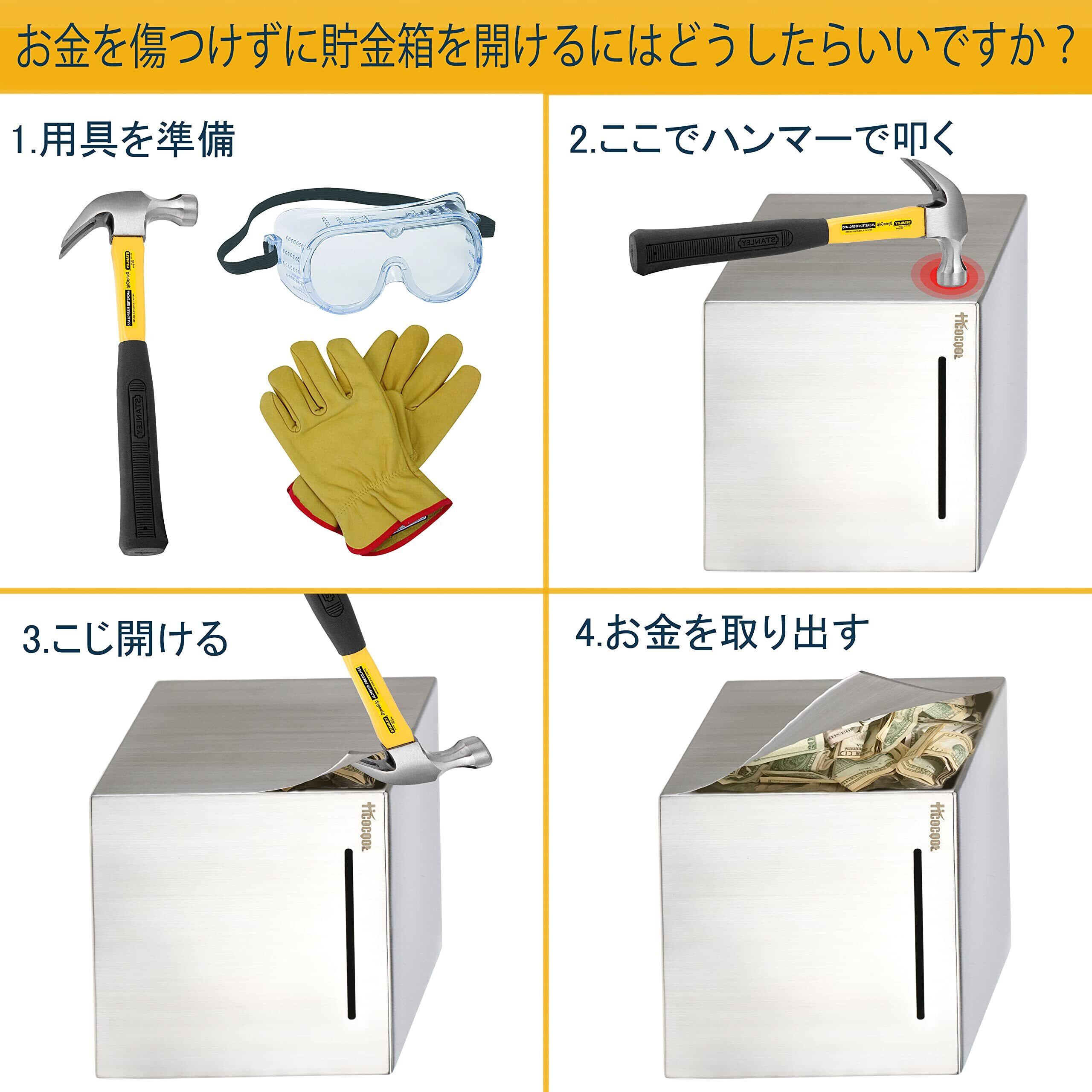 お金を貯めるのが簡単:お金を貯めようとすると難しく感じるかもしれませんが、この収入だけの貯金箱なら簡単に貯めることができます。 6面すべてがステンレス板を溶接したもので、お金の投入口は1つだけです。 簡単に取り外せないからこそ、確実にセーブできるのです。 長期的な積立計画に最適です