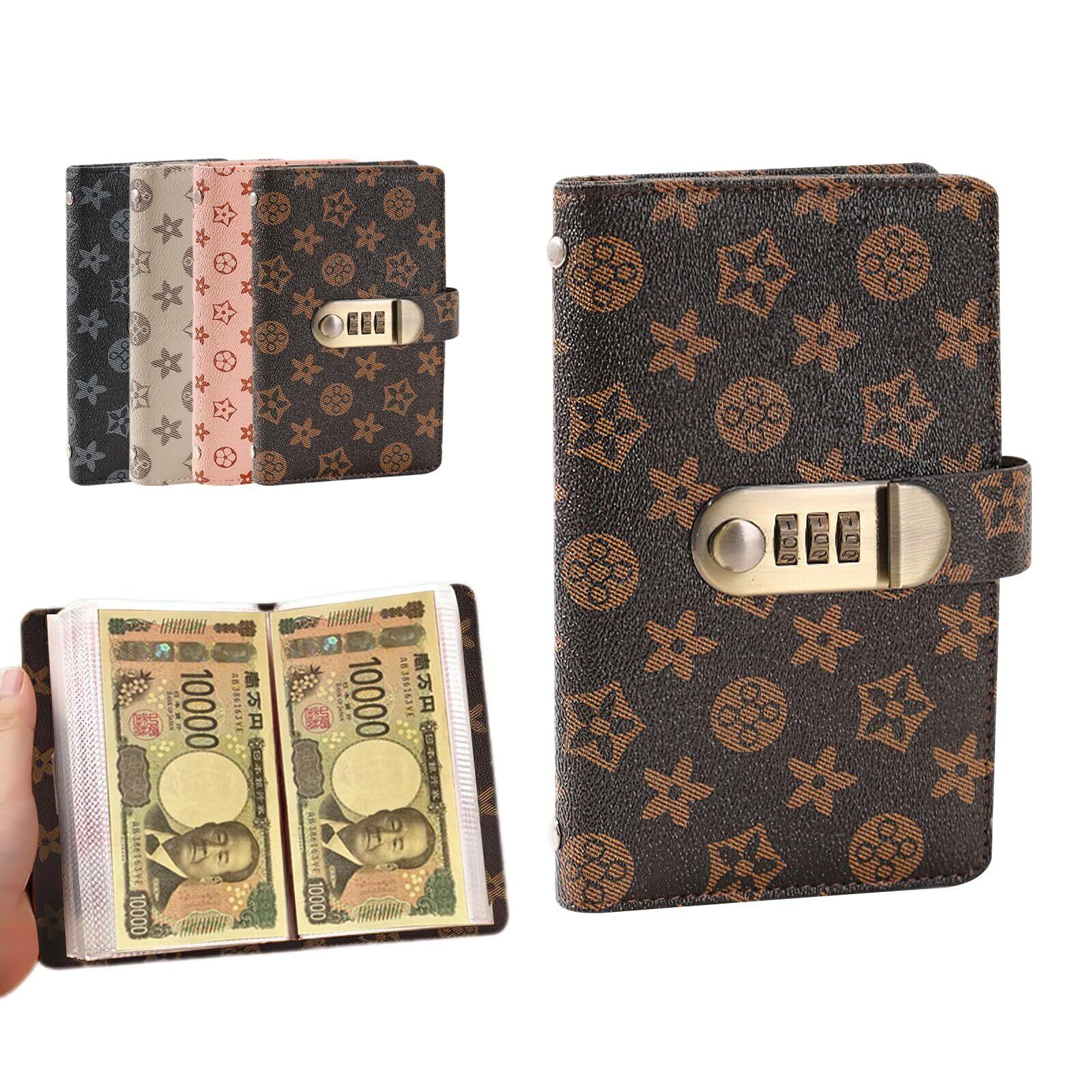 ポクミル お札 貯金箱 ロック付き 100枚収納 お金仕分け 封筒貯金 ファイル バインダー 貯金箱 札 貯金ファイル 本型 災害グッズ コンパクトサイズ 表面PUレザー 質感良い 耐摩耗性 資金管理 日常 貯蓄 (ブラウン)
