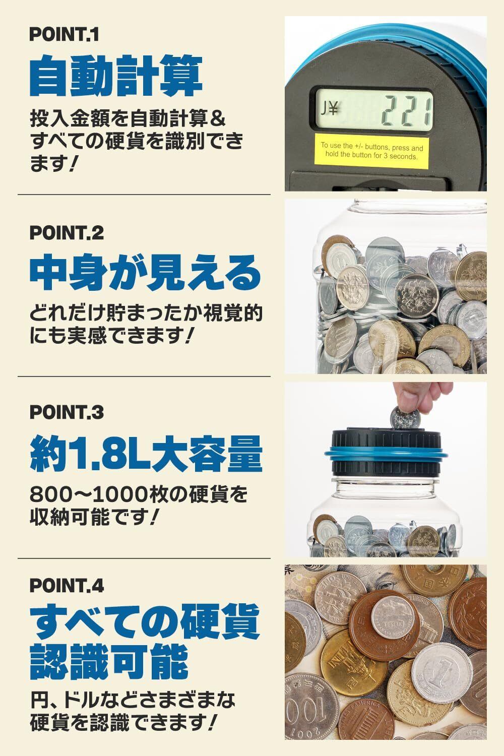 約1.8リットルの大容量で、800~1000枚の硬貨を収納可能です!商品購入を目的とした目標金額の保管や旅行時の予備資金として使用するのもおすすめです。