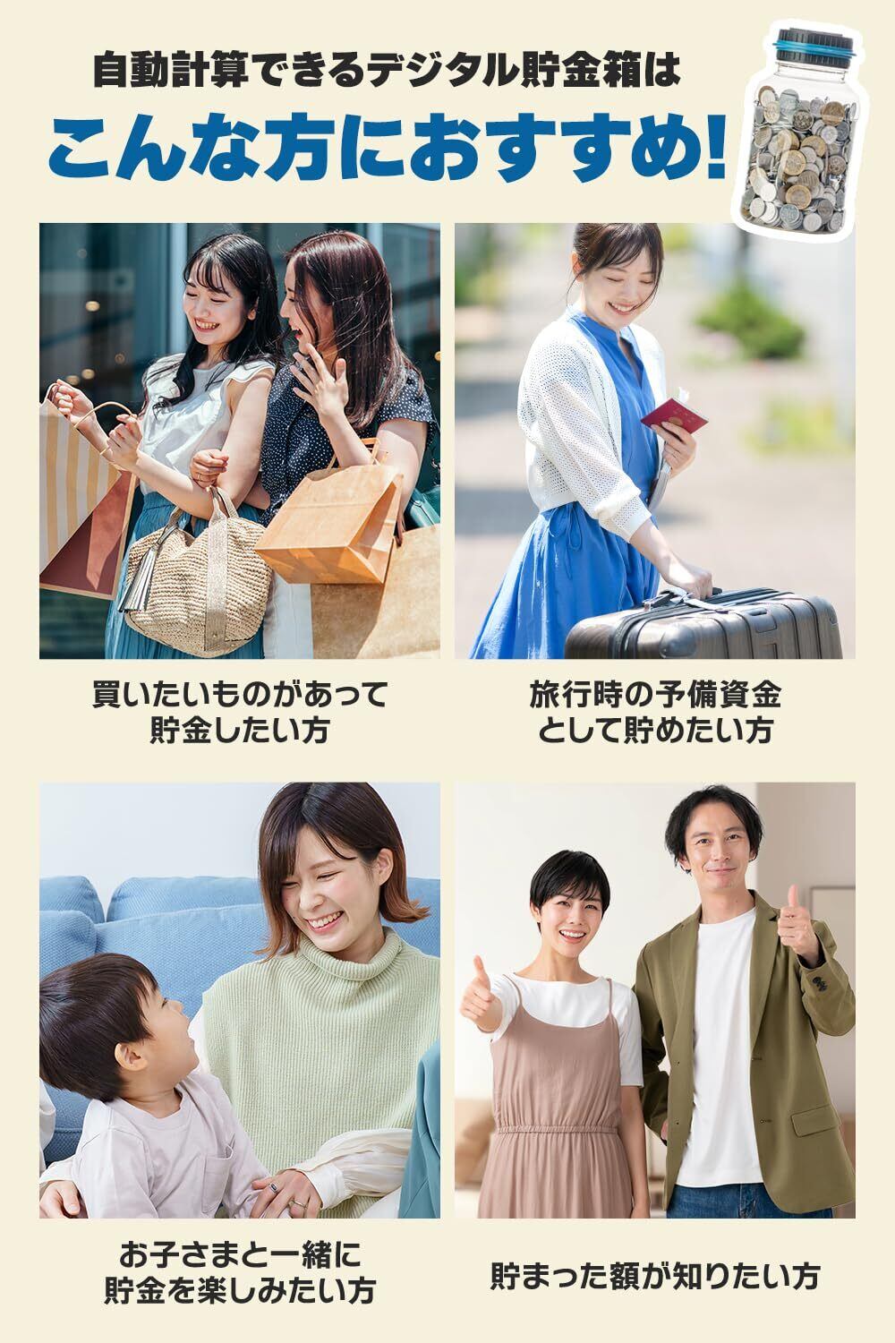 お金を入れるたびに自動で貯金額をカウントするのでいくら貯まったかわかりやすく、貯金に対する達成感が強く感じられます。