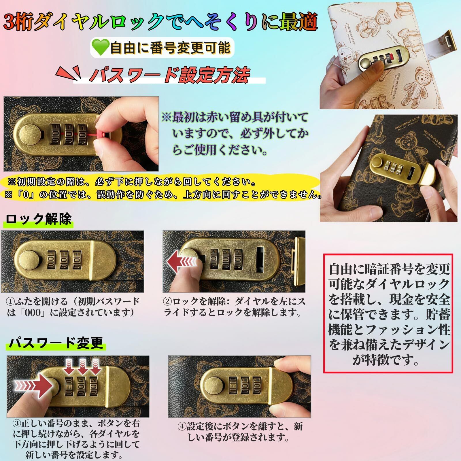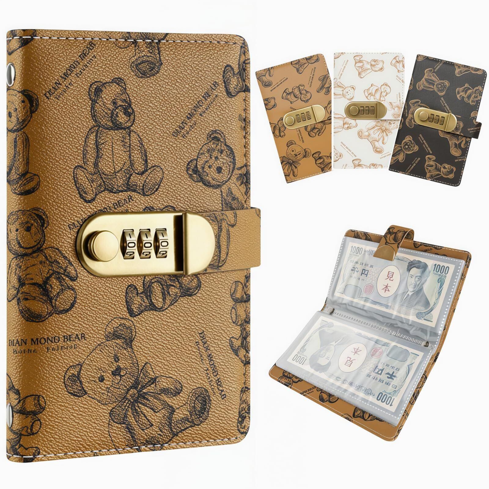 [貯金箱 お札]100万円貯まる手帳 可愛い小熊デザイン 封筒貯金 お金管理 ファイル バインダー貯金 家計管理 貯金手帳 隠し金庫 金銭出納帳 本型 ダイヤルロック付き (ブラウン)