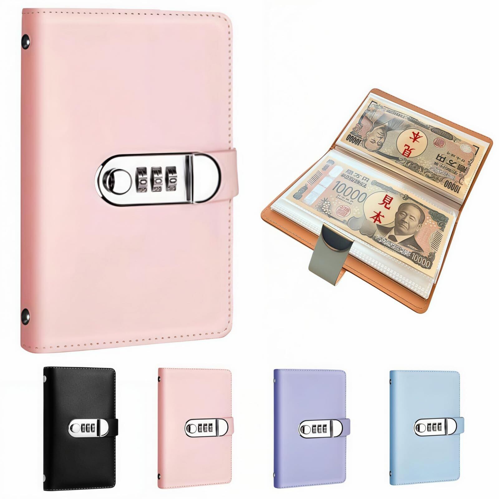 [100万円収納貯金箱 ]お札入れ貯金手帳 封筒貯金 お金管理 ファイル バインダー貯金 家計管理 手帳型貯金 隠し金庫 金銭出納帳 本型 ダイヤルロック付き (ピンク)