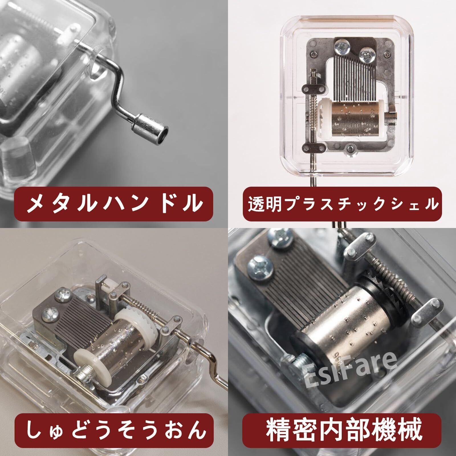 【高品質】この手回しオルゴールのシェルは透明度の高いアクリル素材で作られています。手回しオルゴールは、私たちに幸せな気分を与えてくれます。丁寧に作られており、見た目も美しく、クリアで美しい音質で、音楽がもたらす精神的な洗礼をお楽しみいただけます。オルゴールの装飾は、ご家庭に芸術的な雰囲気を添え、生活の質を向上させます。