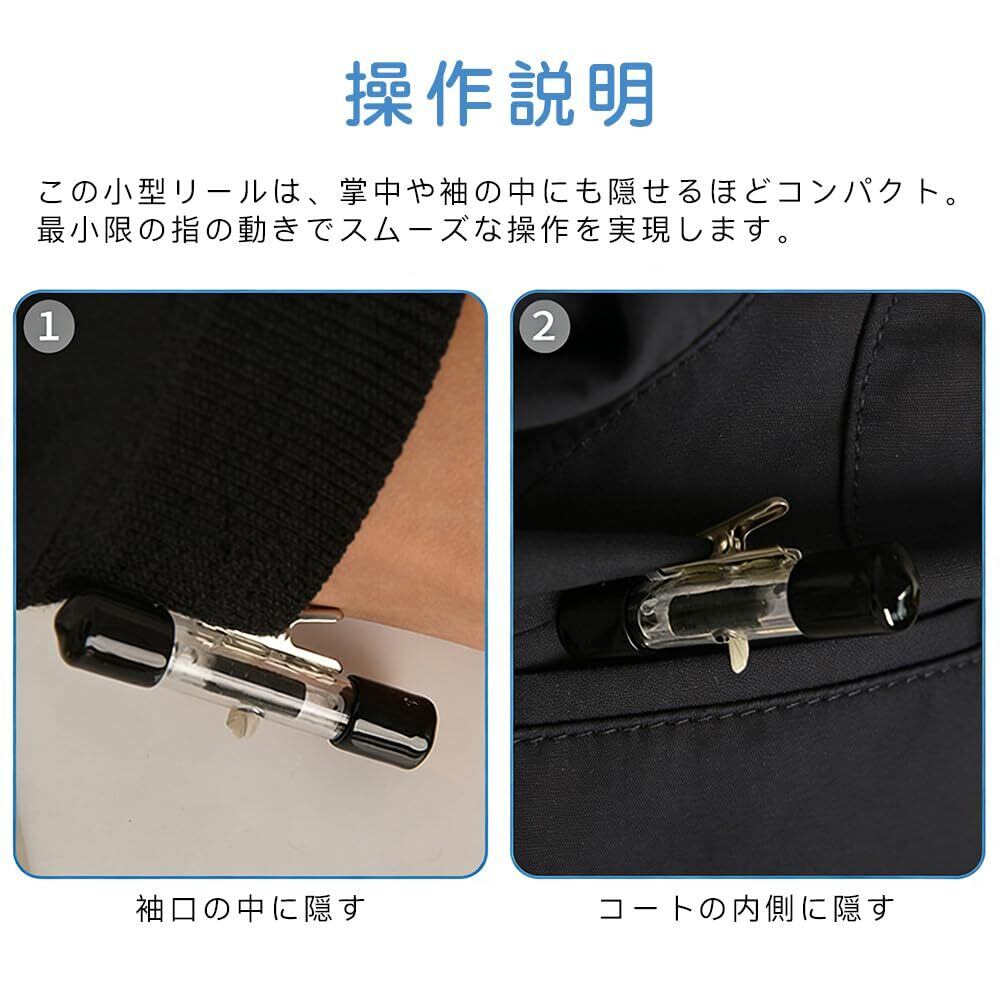 高品質な糸と機構:耐久性に優れた高品質の不可視スレッド(最大長約8m)と、スムーズで静音な巻き取り機構を採用。腕に装着しても日常の邪魔になりません。