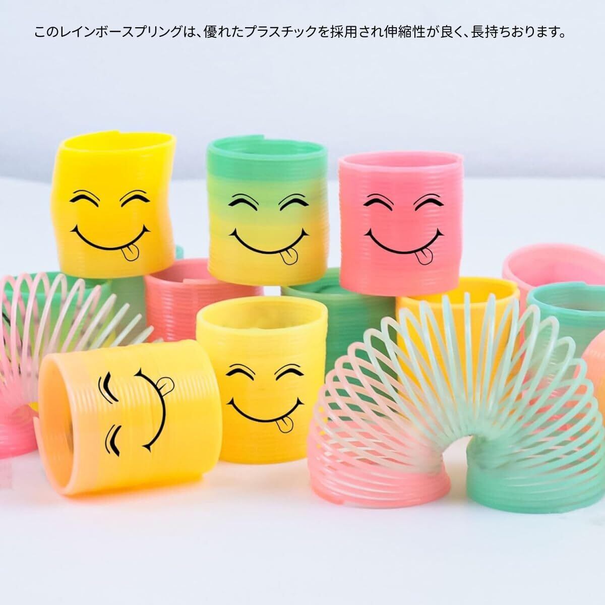 レインボースプリング 可愛い 笑顔 伸縮 スプリングのおもちゃ伸び 景品用 くじ引き 縁日 マジック 手品 カラフル 36個入り