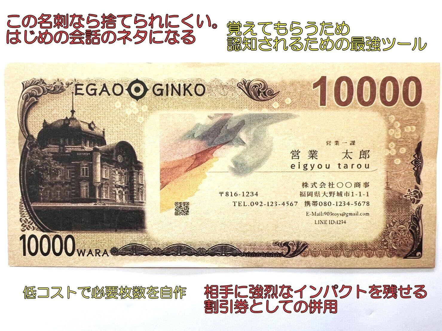 ・サイズは縦横ともに本物の95%サイズにしてます。(本物と同一サイズは偽札に該当する可能性があるため)ぱっと見0.5秒くらいどっきりします。そしてそのあと必ずみんな笑顔になります。1束100枚です。