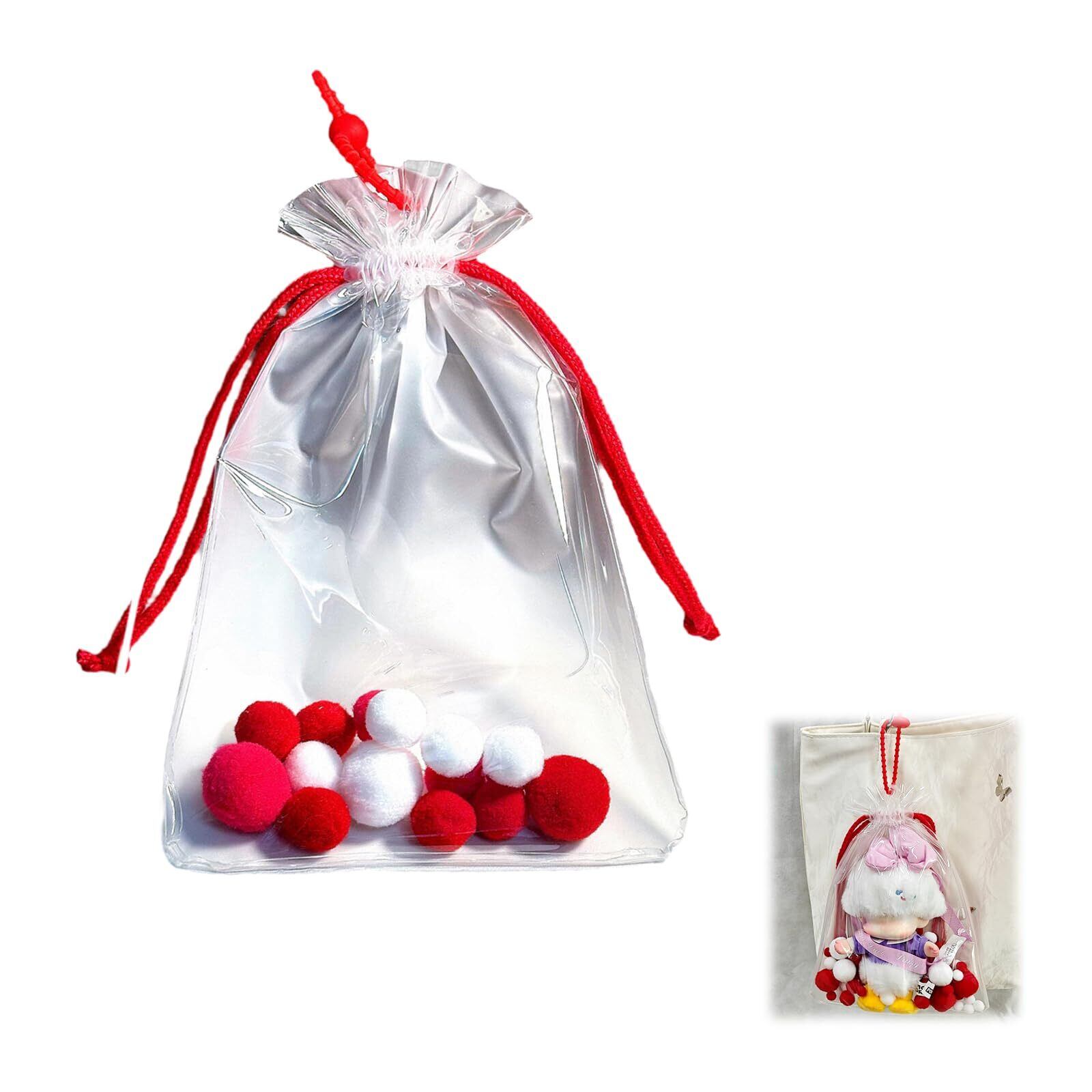 aninako 痛バッグ ぬいぐるみポーチ 19/21cmサイズ対応 ぬいポーチ 人形の保管場所 ぬい 外出 見せバッグ 推し活グッズ 巾着型 高い透明 防塵 防水 ポンポンボール& 盗難防止ロープ (赤(16*19CM))