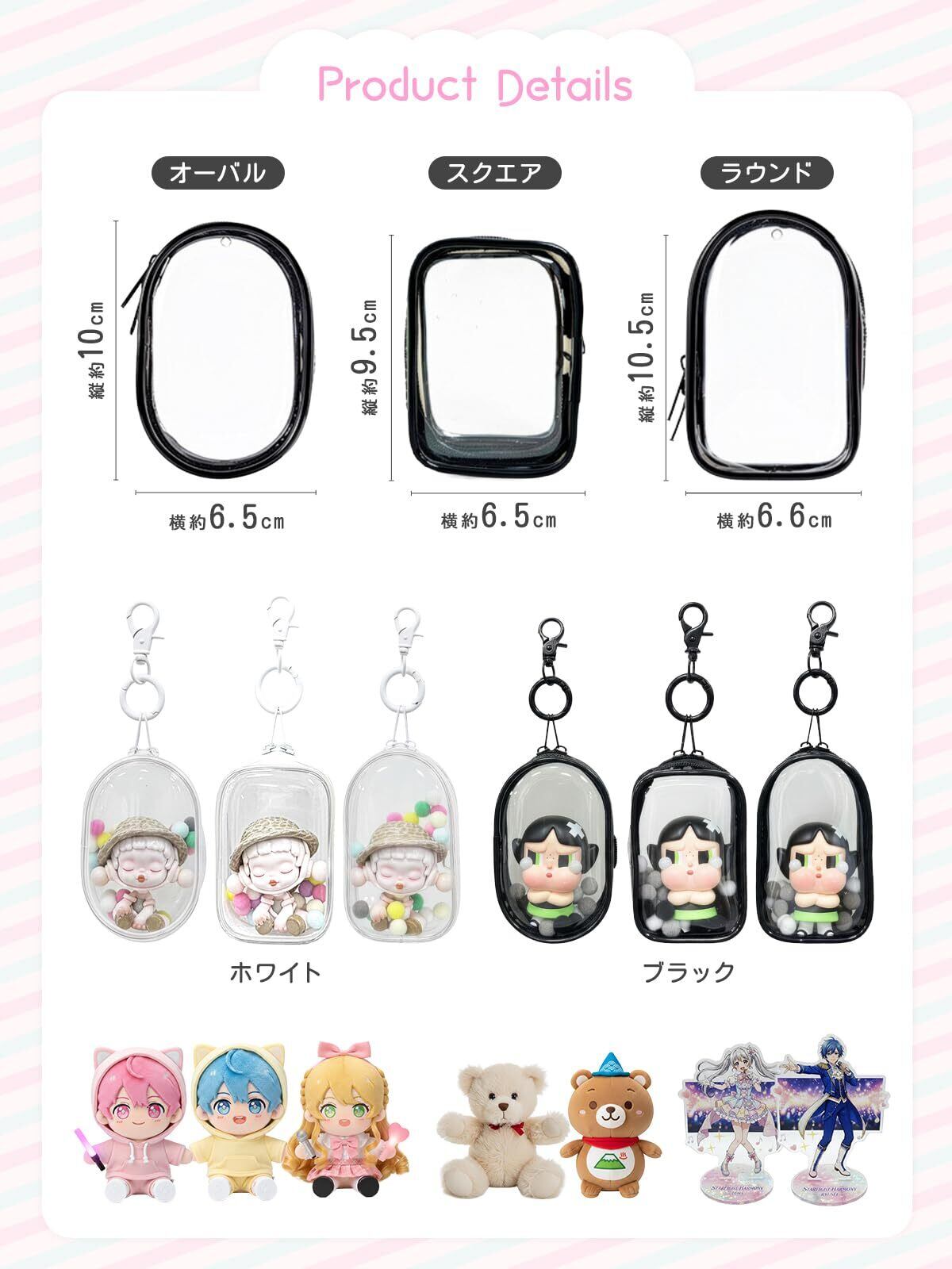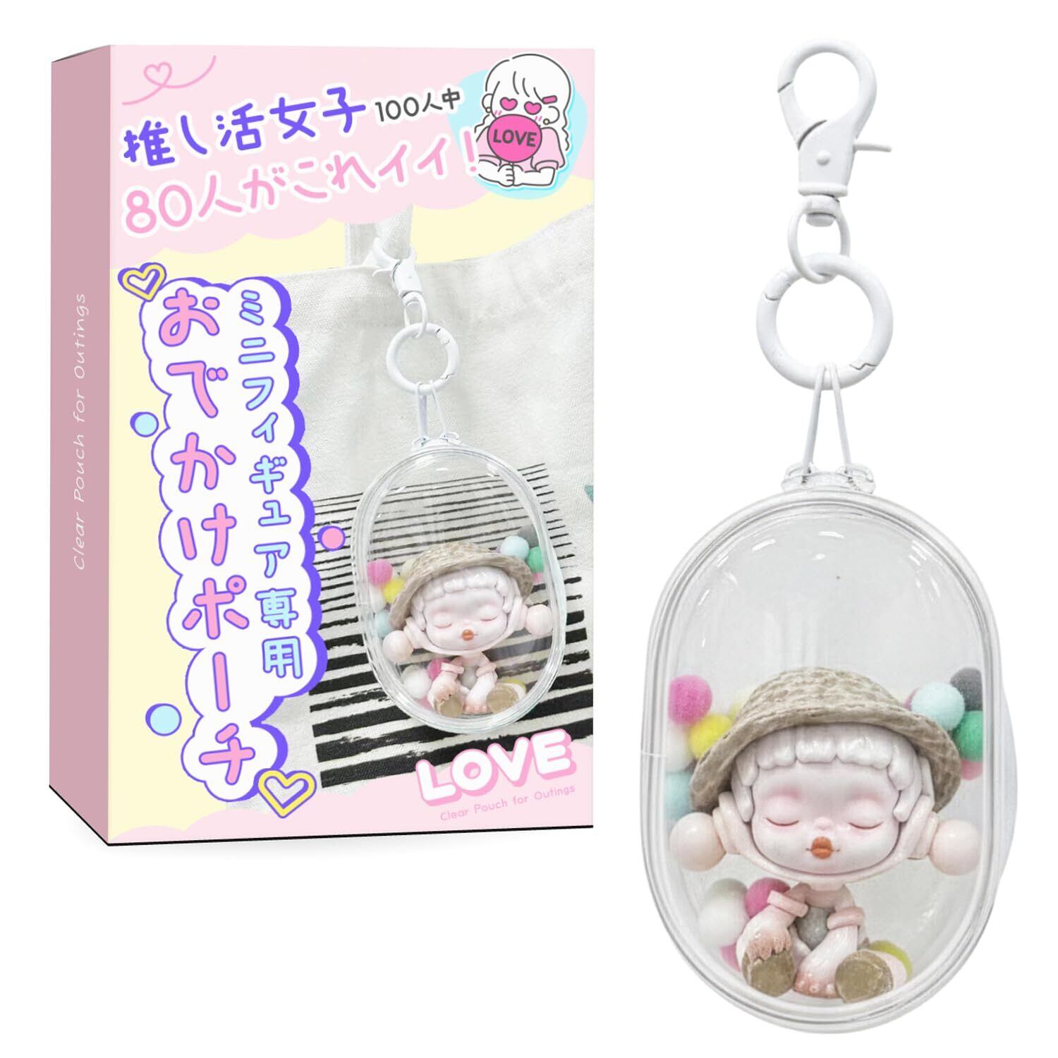 ぬいポーチ 痛バッグ クリアタイプ『ミニフィギュア専用のおでかけポーチ(ダブルファスナー/キーホルダー付き)』 (ホワイト(オーバル ))