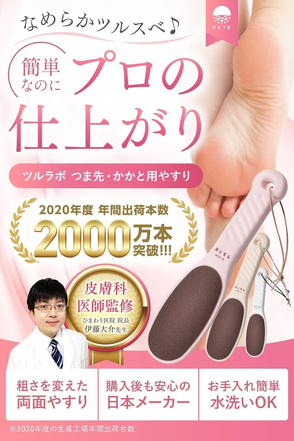 プロ仕様 メンズも かかとやすり粗/細2面 かかとケア 角質ケア 踵 軽石 ヤスリ ツルラボ ホワイト