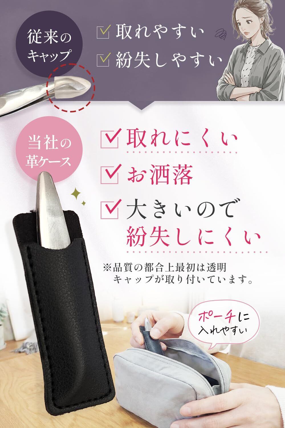 【革ケース付き】 従来の先端キャップとは違い刃全体を覆う革ケースを採用。保管時の安全性を高め刃先をしっかり保護します。※最初は透明キャップが付いておりますが、取り外して革ケースをご使用ください。