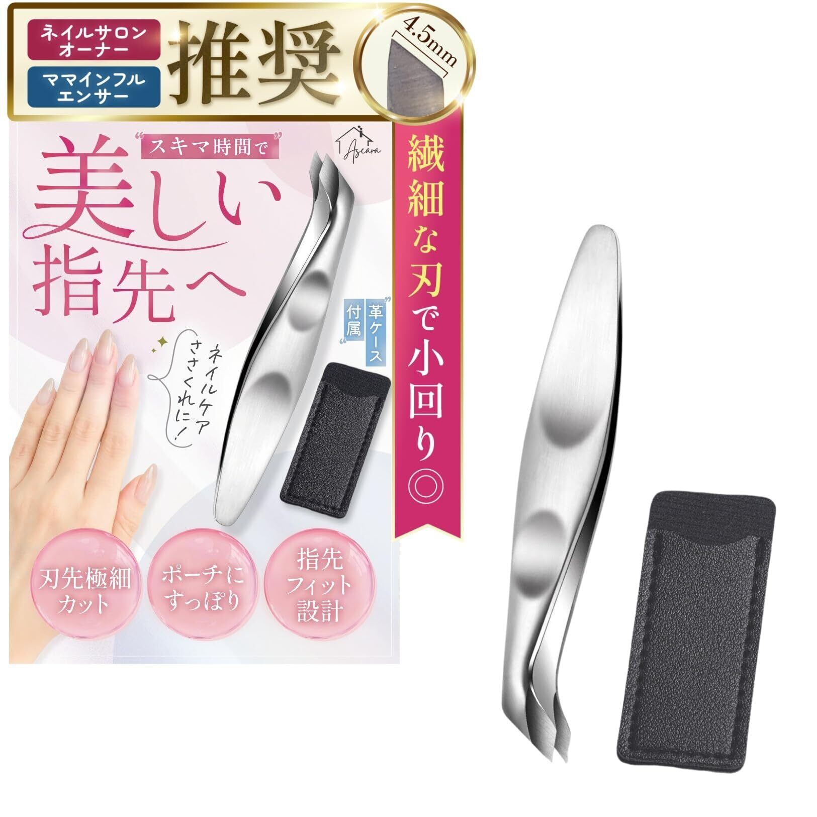 【ネイリスト推薦の刃設計】 ネイルサロンオーナー様から使いやすさを評価。細かい部分も狙いやすい刃幅と角度で軽い力でもスムーズにカットできます。