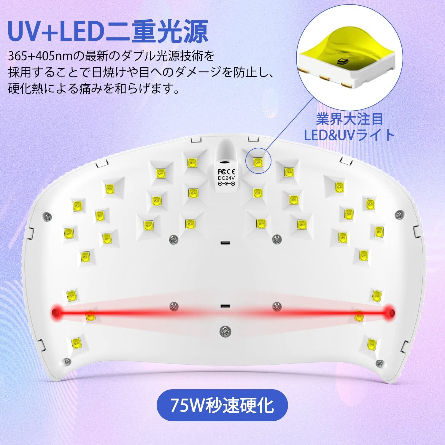 NAILGIRLS LED & UV ネイルライト 75W ジェルネイル用ライト uvライト レジン用 硬化ライト プロ用 人気 業界注目低ヒート機能 全ジェル対応 三階段タイマー 手足両用 ホワイト (White)
