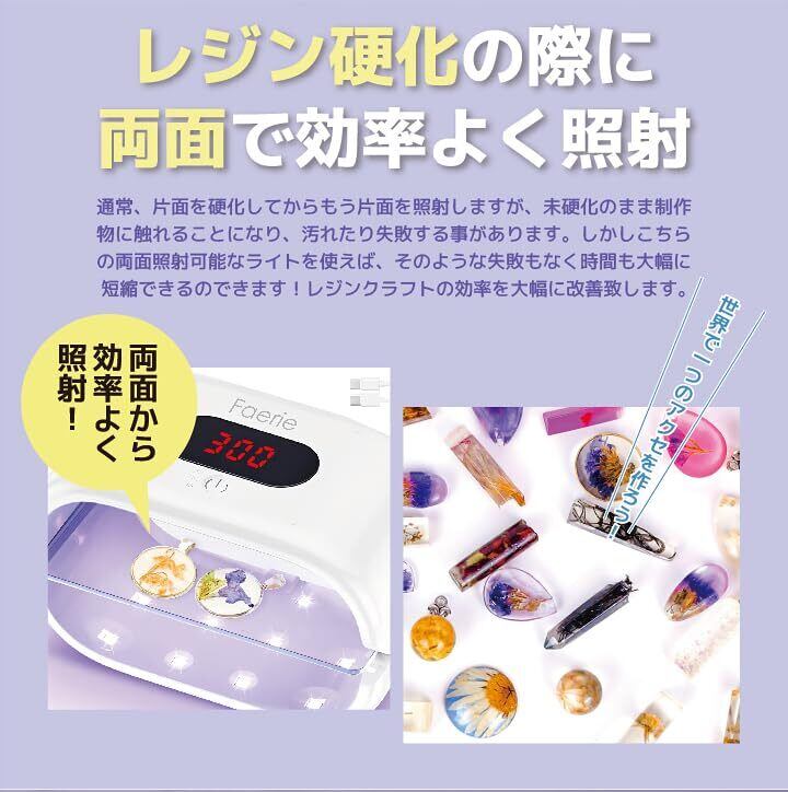 Faerie UV/LED レジン専用ライト 36W 両面UVライト ネイルライト タイマー設定 レジン ジェルネイル ライト LEDライト アクリル板搭載 マグネット式 レジンクラフト作りに最適 USB式 日本語説明書&12ヶ月保証付