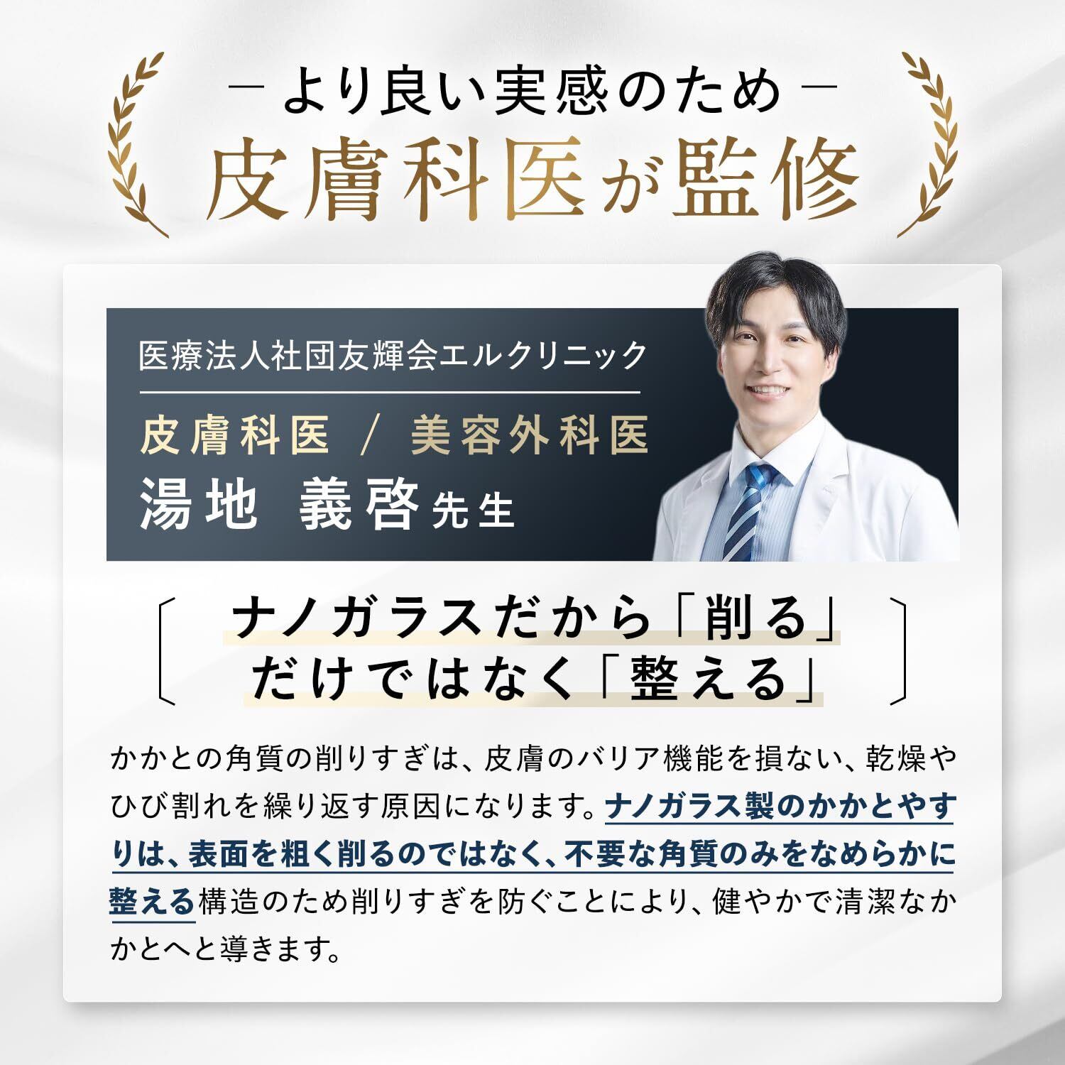 【摩耗しないナノガラス】削り面には高品質なナノガラスを採用。一般的なやすりと異なり、摩耗しにくく、均一なケアが可能です。繰り返し使っても性能が落ちにくく、長く使えるのが特長です。