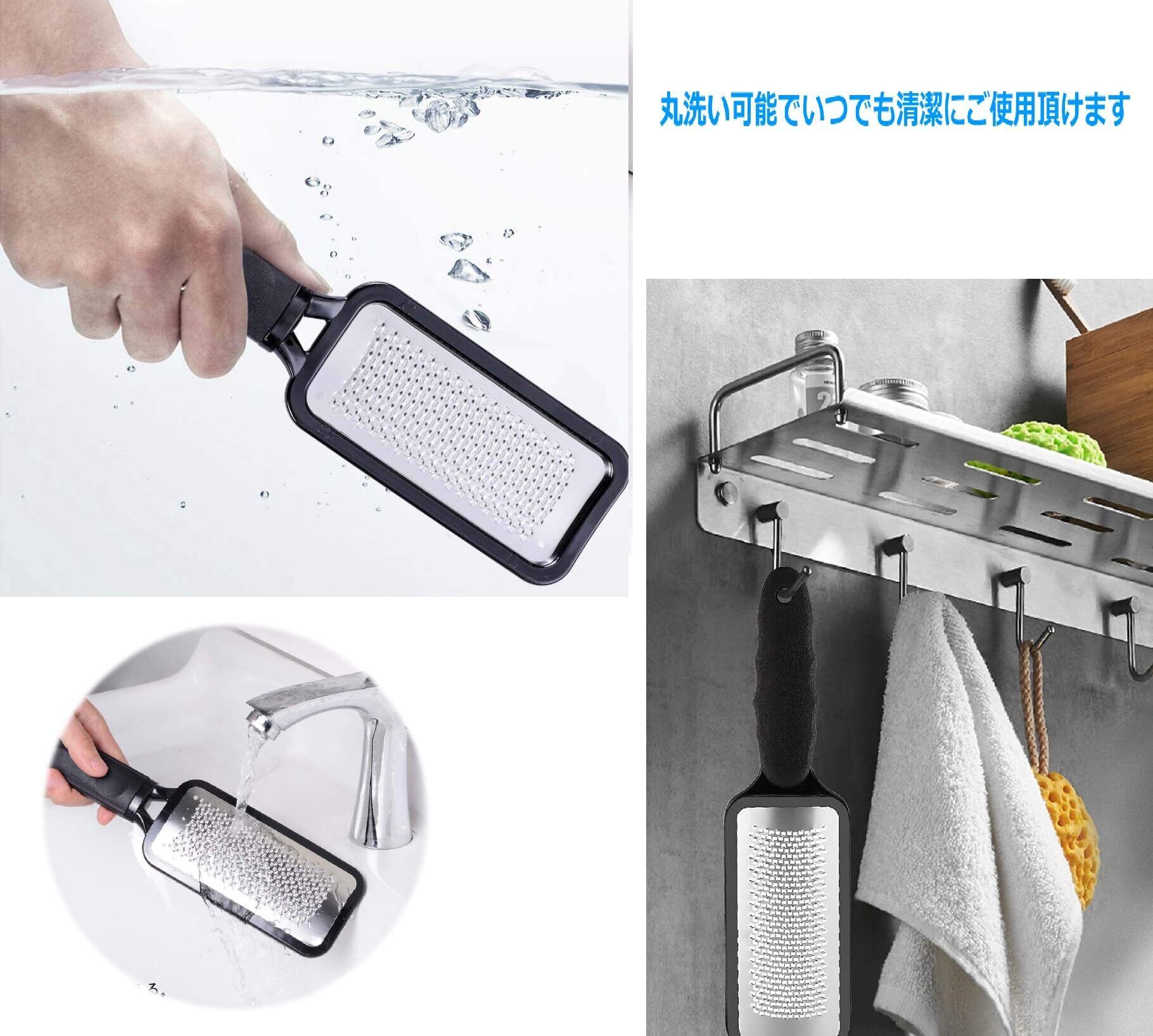【頑固な角質でも削れる】ステンレス製フットファイルはマイクロカッターで頑固な確執も削り落とす事ができ、つるつるとした肌に生まれ変わります。取扱が簡単なかかと角質取りは軽い力で削れます。使用後は潔感のある踵に仕上がります。 カルス(たこなど硬化した表皮)除去用のフットファイルは、濡れた状態の足や、濡れた床など、水に濡れるような環境化でも使用できます。古い皮膚、角質、硬化した皮膚を取り除く事が出来て、これにより、足がまるで赤ちゃんのように柔らかく、滑らかで美しくなります。