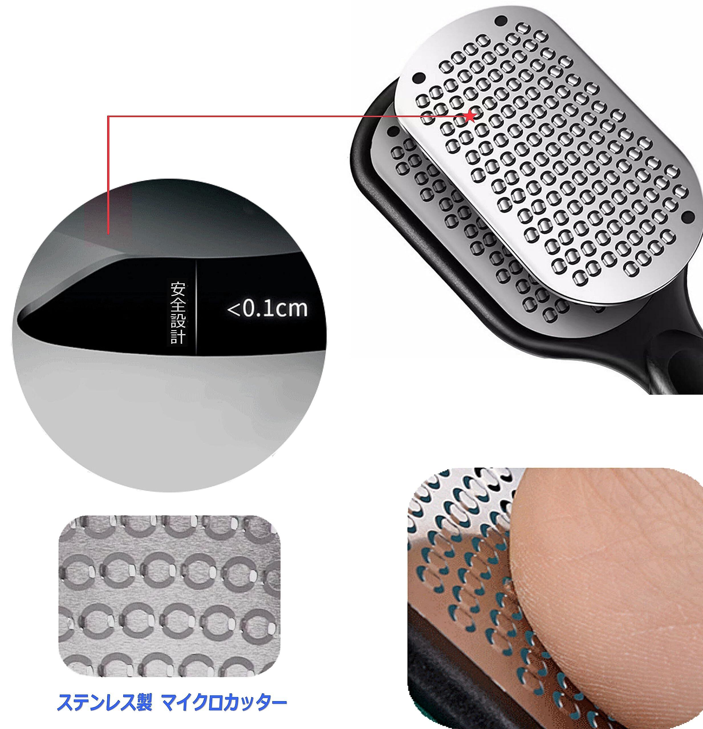 かかと 角質取り フットケア ステンレス製 足 角質リムーバー やすり 丸洗い可能 カバー付き マイクロ カッター 削り ブラシ (BLACK)