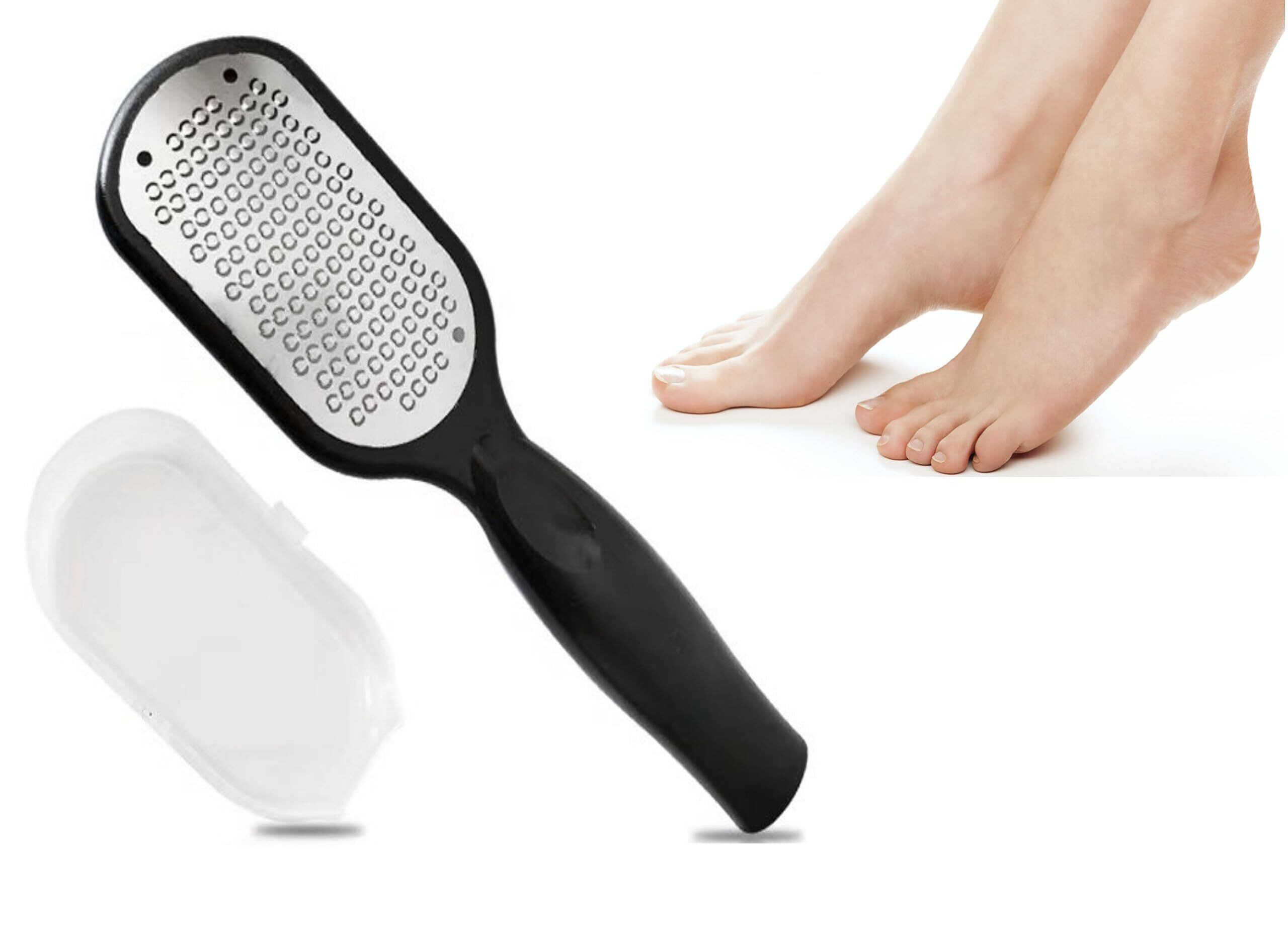 使用方法:かかとや角質が硬くなった部分に当てて削ります。一方向に動かすとポロポロと角質が落ちてきます。力を入れすぎないように注意してください。使用後は水で洗い、乾燥させてください。