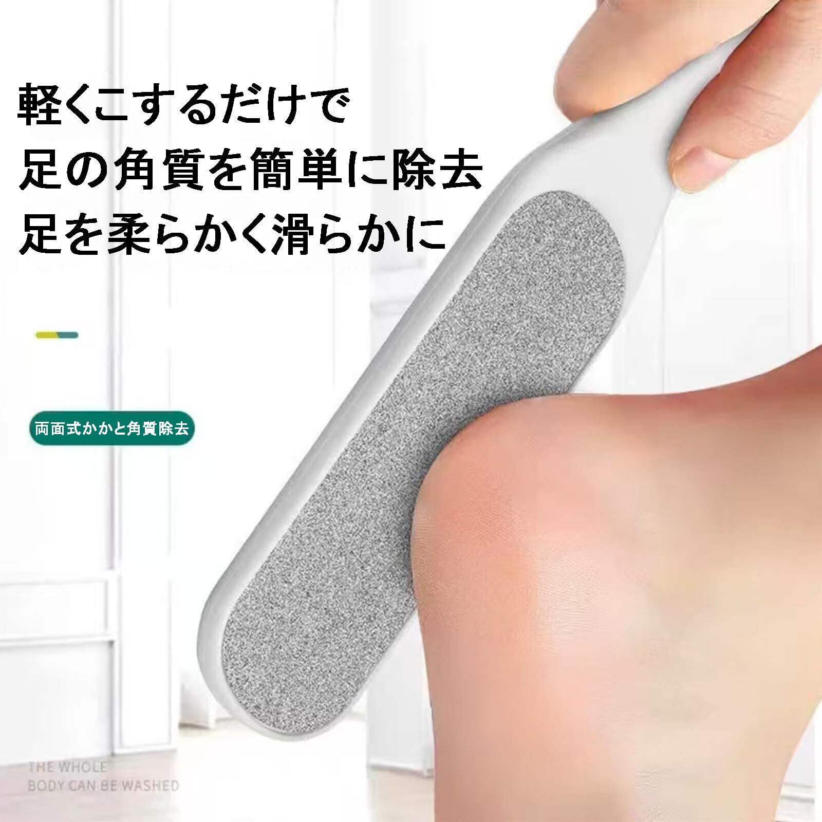 水洗い可能で清潔:本体全体が水洗いできる構造。使用後は水ですすぐだけで、角質のカスをきれいに洗い流せ、衛生的に繰り返しご使用いただけます。清潔感を保ちたい方に最適です。