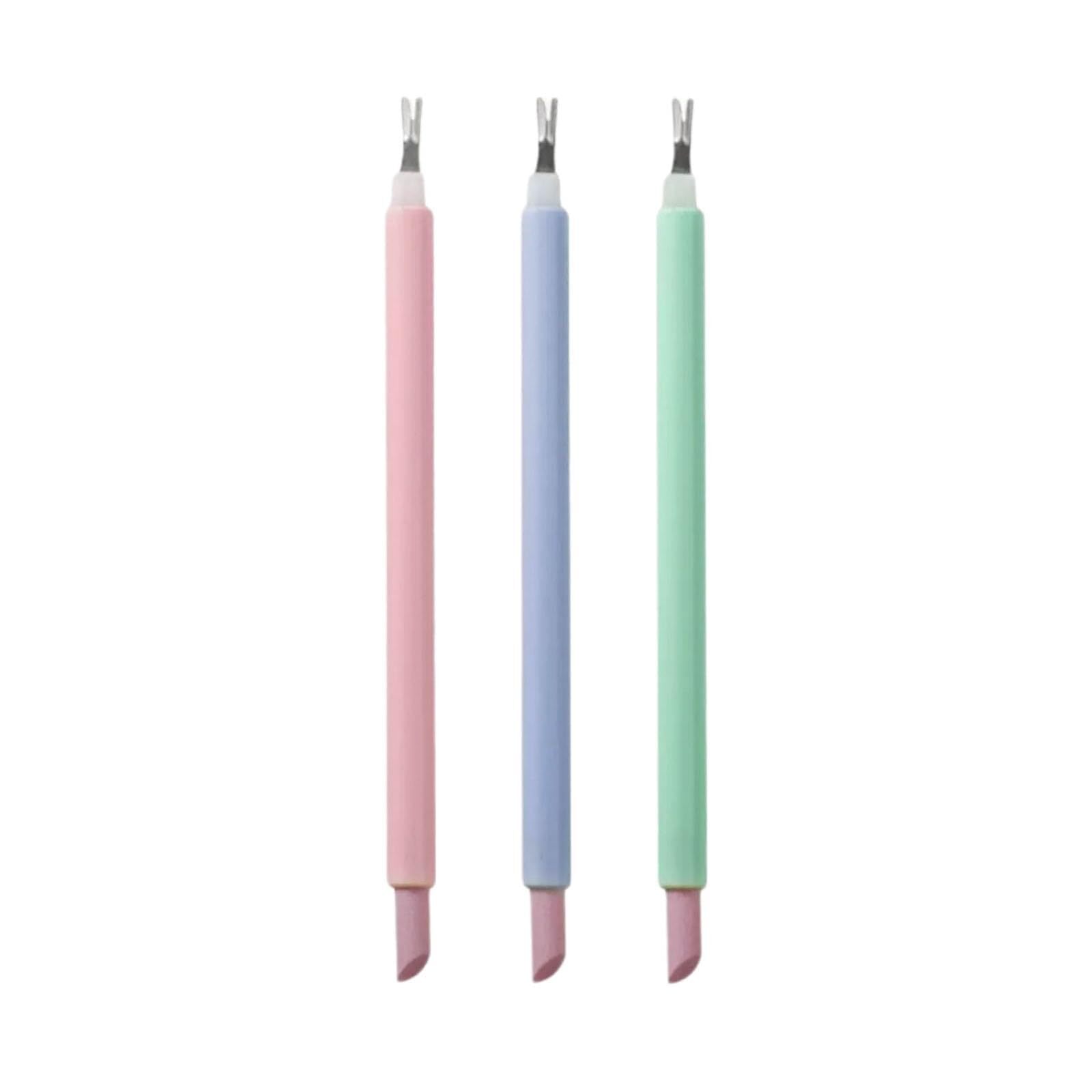 ネイル プッシャー キューティクルプッシャー 両頭 スチール製 3個セット (ブルー/グリーン/ピンク) - ネイル ケア セット 甘皮 除去 道具 セルフネイル 簡単 安全設計 プロ仕様 自爪ケア メンテナンス