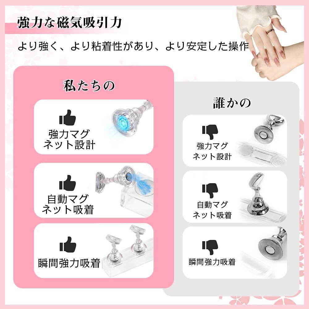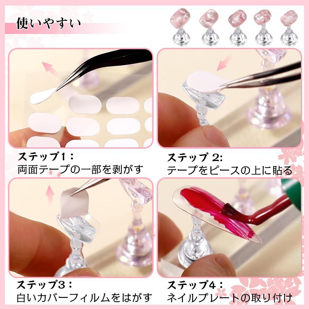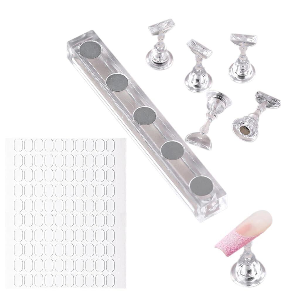 セット内容:ブラケットベース1ピース、ネイルチップブラケット5ピース、両面接着剤(1シート、100ピース/シート)カラー:透明。マグネット式ホルダーで、ネイルデザインを簡単にディスプレイできます。