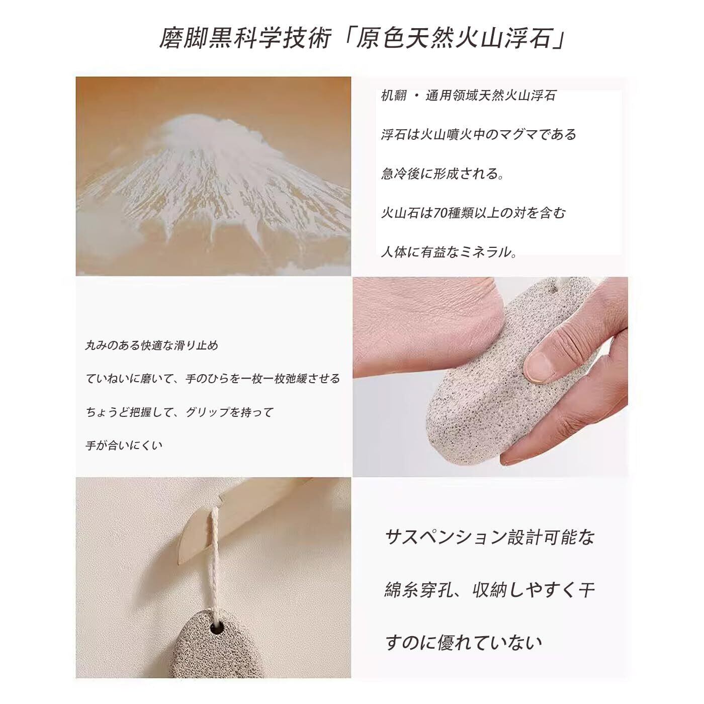 天然火山石材質 高品質天然軽石(天然火山石)を用いて製造し、人工的に磨かれ、無毒で環境に優しく、かかとの角質除去に適している。 石材の表面には無数の細孔が密布しており、耐水性と耐久性を兼ね備えており、直接水洗いでき、カビを繁殖させにくい。 使用後は水洗いして、風通しのよいところに置いて自然に干すのがおすすめです。