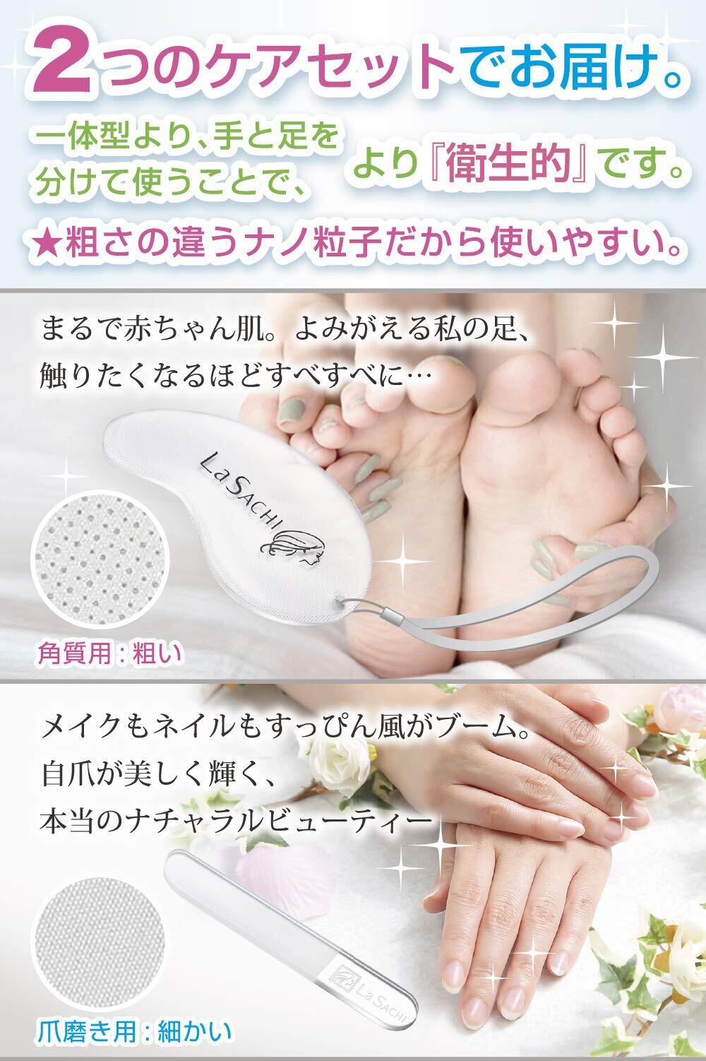 【日本発先進技術】0.01μの凸凹 細粒子で、これまでにない、進化した フットケア と ネイルケア をご体感頂けます。更に優しさと長持ちにこだわった日本製特殊加工ガラスを採用。La SACHI独自の削り具合に仕上げました。