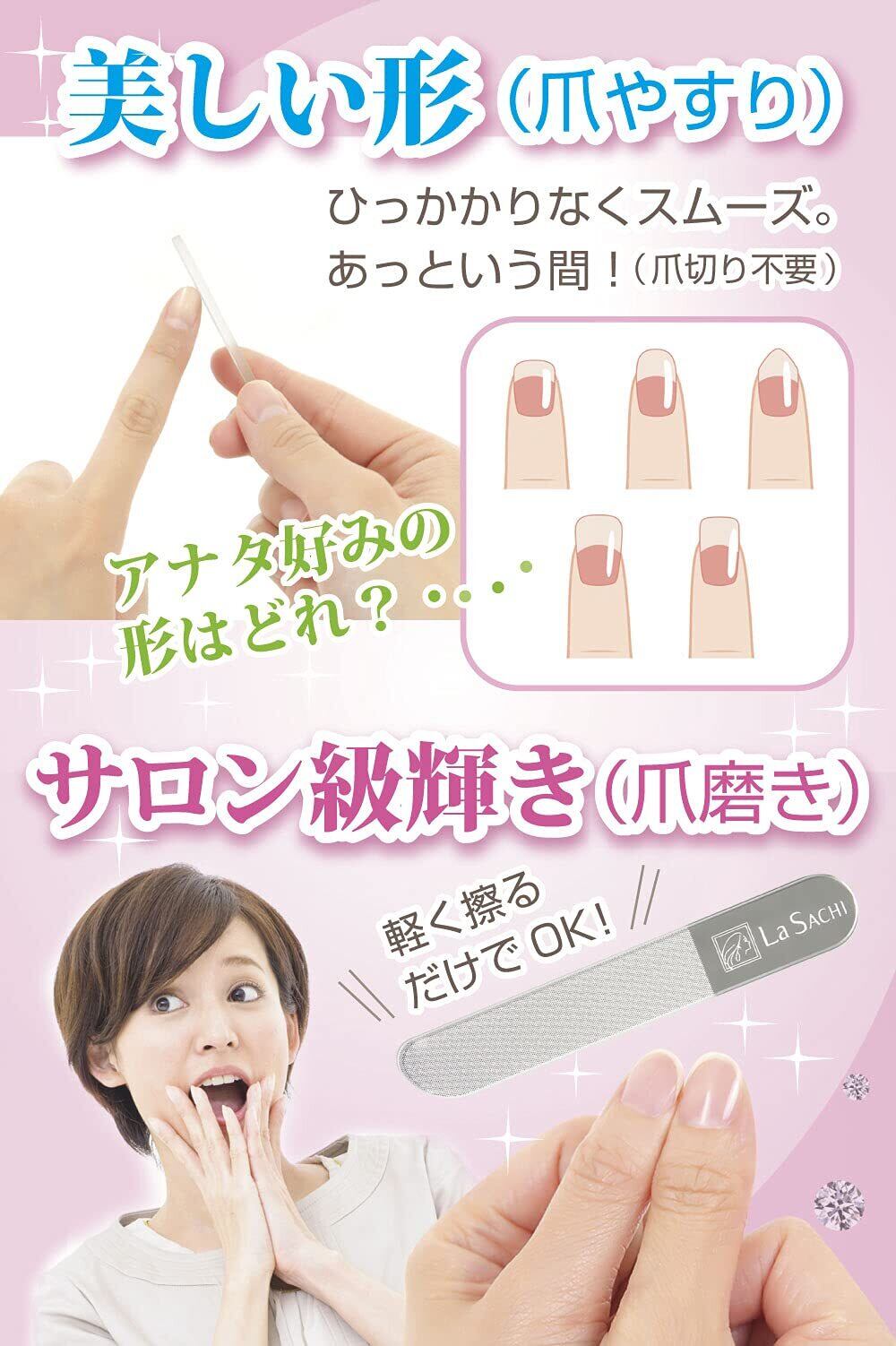 【爪やすり】誰でも簡単!たった 5秒 で滑らか&光り出し、10本指を綺麗に仕上げるまで約10分。2回目以降はもっと 時短 ! 輝きが2週間ほど持続します。 爪の 表面 は つるつる して気持ちいい! コンパクトサイズ だからポーチに忍ばせて、忙しい合間もサッと出して磨けば、あっという間にトップコートを塗ったような輝きに。指先が綺麗になると思わず若返った自分の手を眺めたくなりますよ。マニキュア を使わない為、 赤ちゃん のすぐ伸びてくる ギザギザ爪 、 妊婦さん 、職業上マニキュアができない方や 男性 にもお薦めです。また、 二枚爪 や荒れた爪も簡単に 滑らか 艶々になります。最近では 介護 ケアや、素早く仕上げたい ペット の ケア用品 としても重宝されています。綺麗なパッケージだから、ギフト プレゼント にも人気です