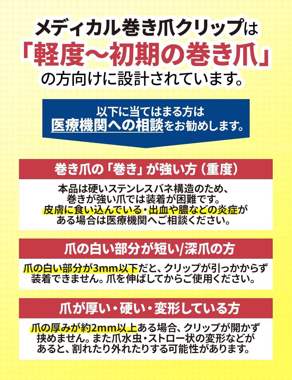 【整形外科医師との共同開発】整形外科医師と共同開発した巻き爪クリップは、専門的知識に基づき設計された巻き爪 矯正器具。まきづめ 矯正を効果的に行える構造で、自分での巻き爪ケアの不安を解消。巻き爪 矯正を考える方におすすめの新しいアプローチで、巻き爪 テーピングや巻き爪 ワイヤーを試した方にも満足いただけます。自宅でまきづめ 矯正を安心して継続できる仕様です。