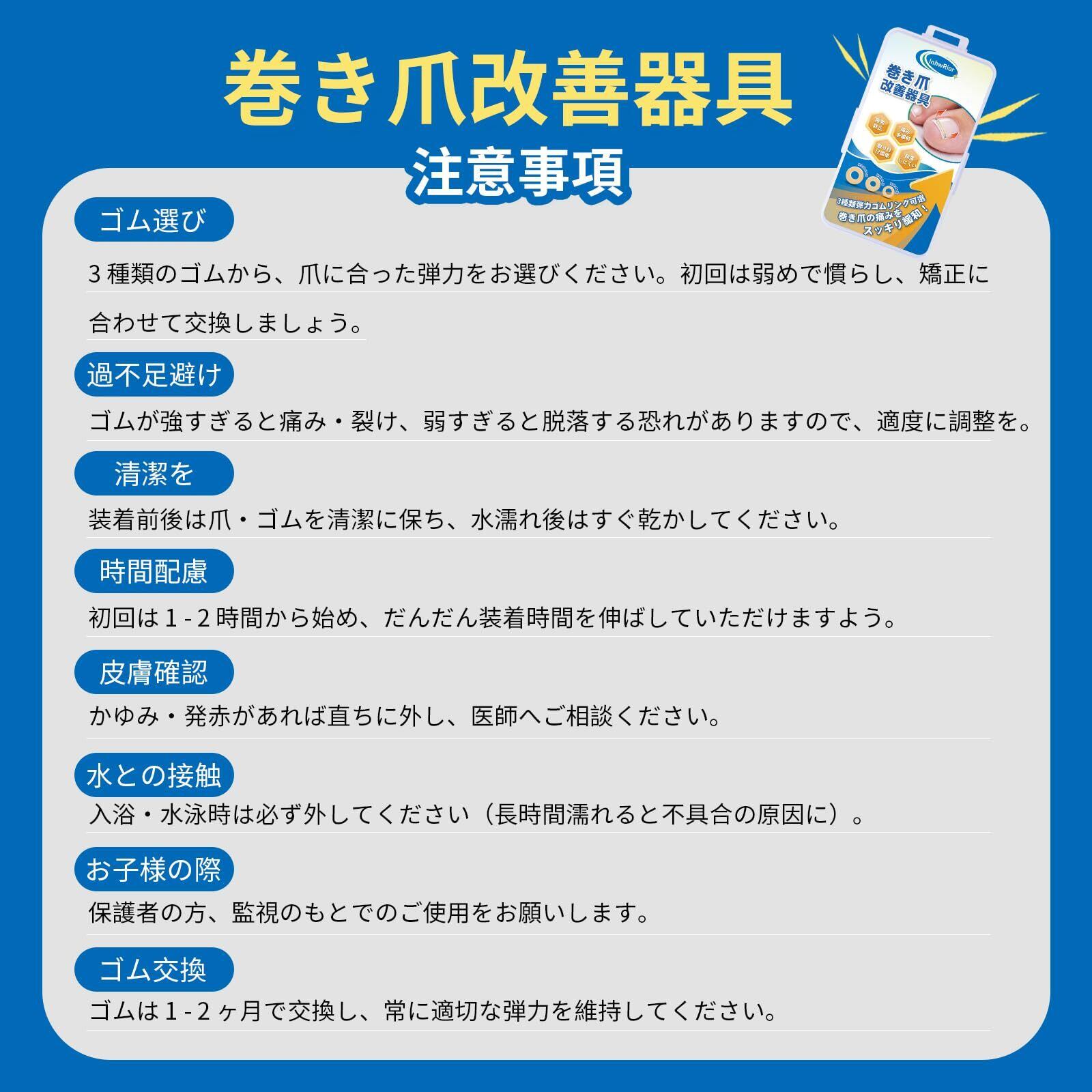 InhwRior 巻き爪改善器具 着脱自在 ゴム交換簡単 3 種類弾力ゴムリング搭載 サイズ選び不要 清潔が簡単 自宅で手軽に装着 嵌甲の痛み緩和 再発防止