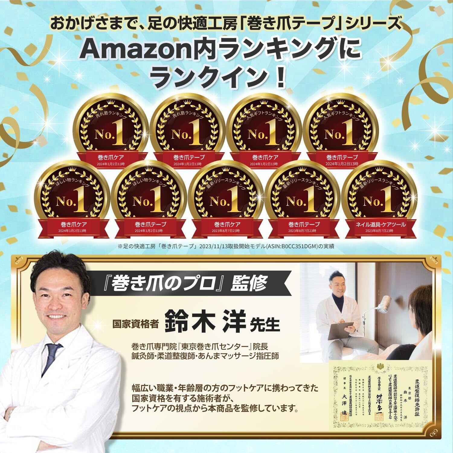 【巻き爪のプロ監修】累計3万人の施術実績のある巻き爪専門院「東京巻き爪センター」の院長が監修した自信作。【こだわりの曲面形状】研究を重ねてたどり着いた”足指にフィットする形”により剥がれにくさを実現。靴下の中でもご使用いただけます。