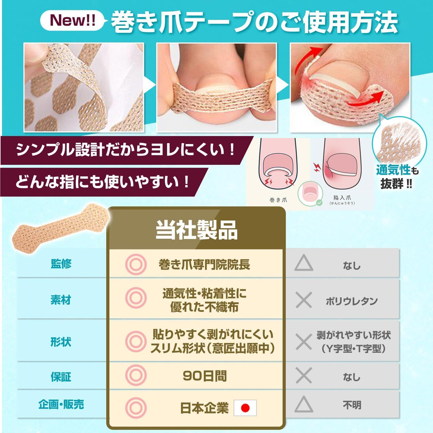つめらっく 巻き爪テープカンタン貼るだけ!陥入爪 まきずめ まきづめ 巻爪 まきつめ 爪テープ テープ 足の快適工房 (目立ちにくい小型タイプ, 40枚)