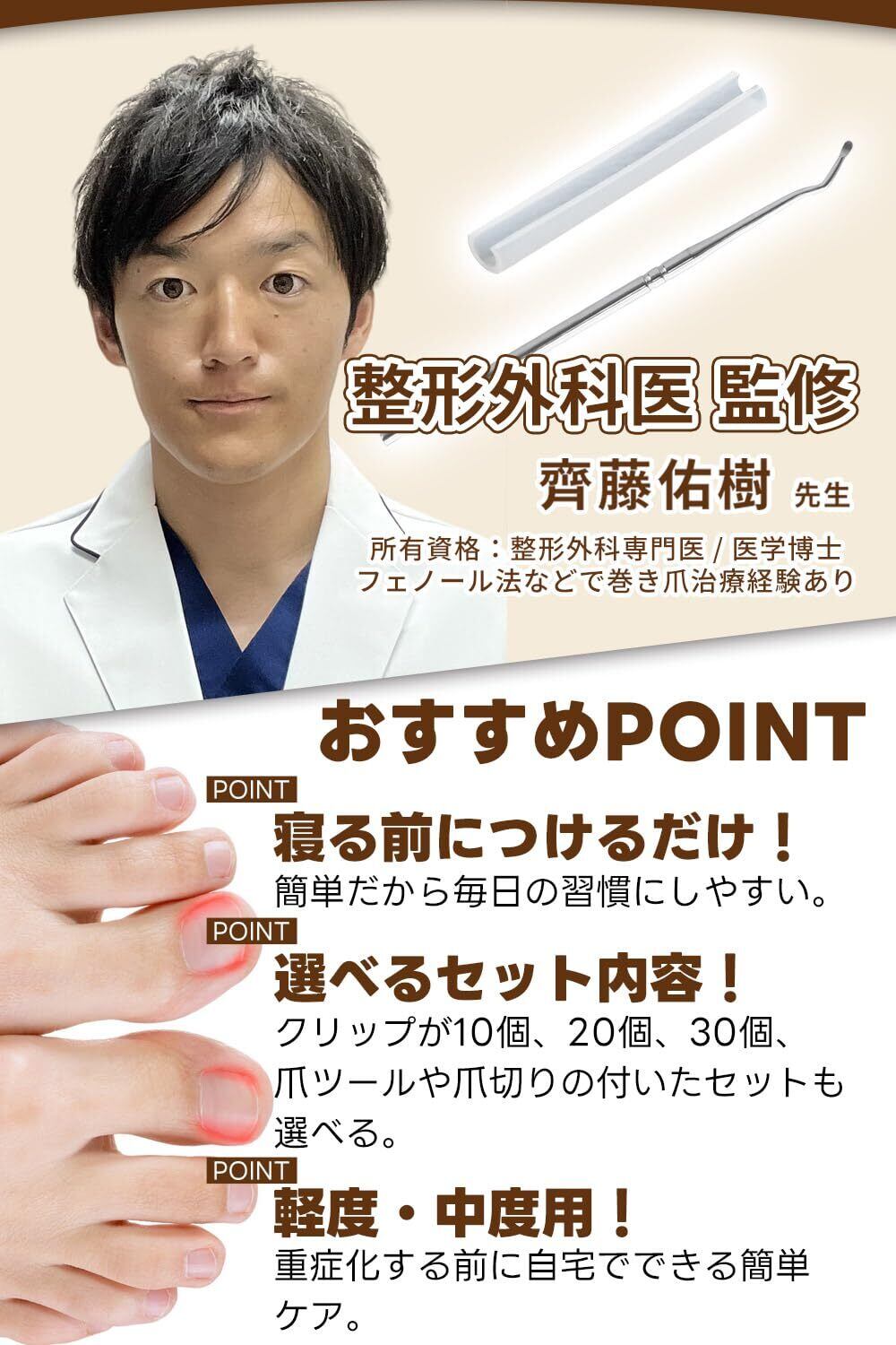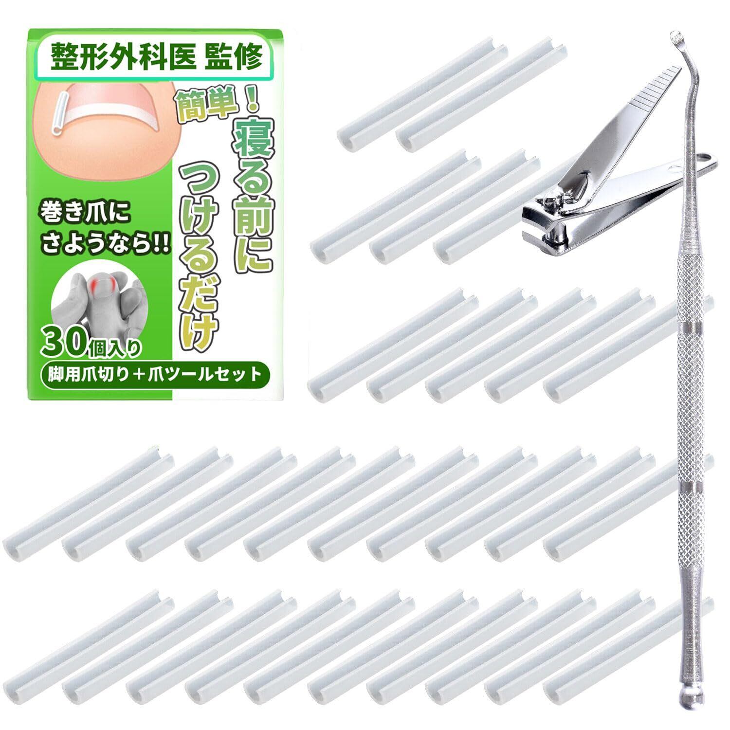 巻き爪クリップ 爪ツールセット 『寝る前につけるだけ!』 (脚用爪切り+爪ツール+クリップ30個)