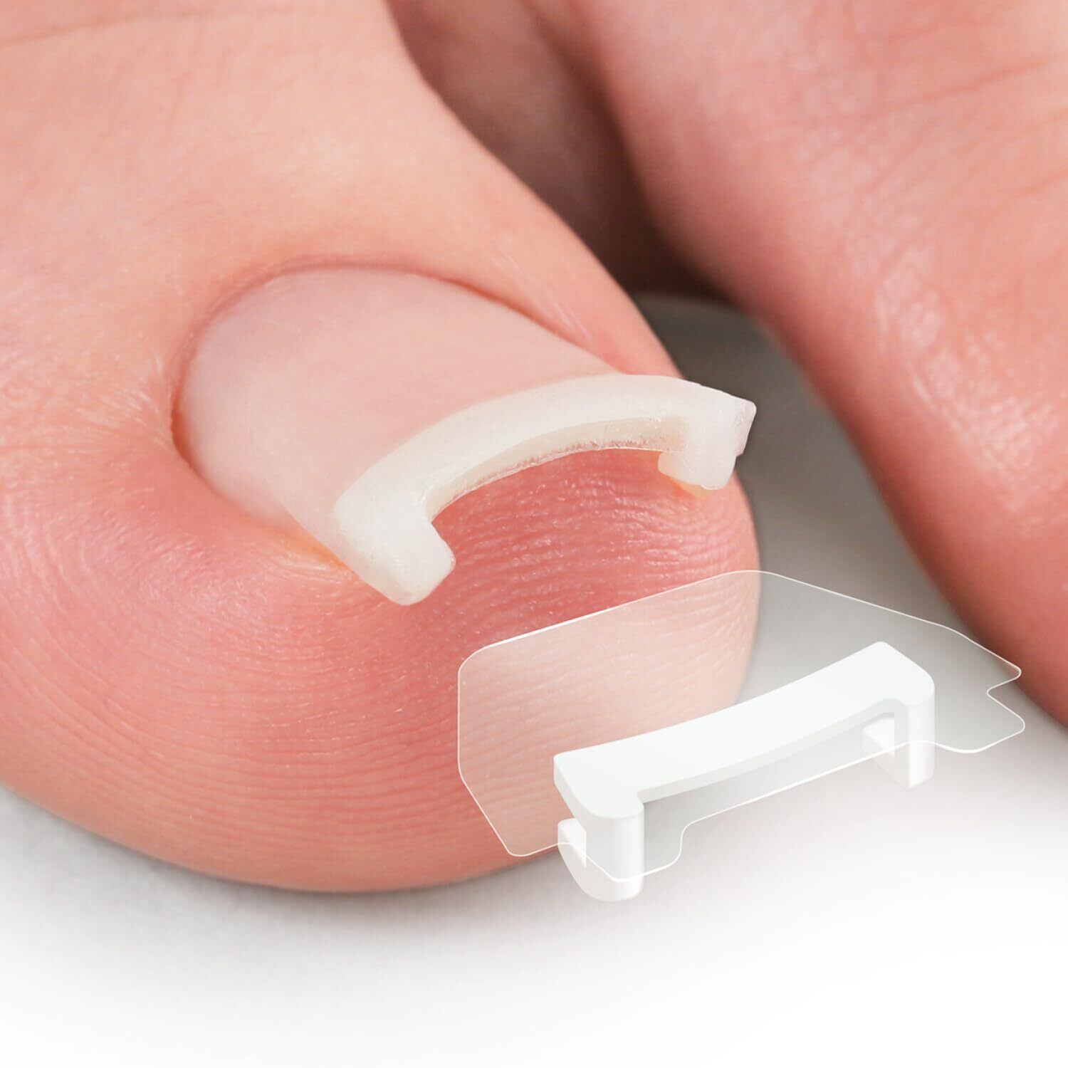 【簡単装着】弾力性の高い樹脂素材のフックを爪に引っ掛けてシールを貼るだけです。巻き爪を浮かせて、くい込みがラクに!簡単装着で爪がリフトアップ