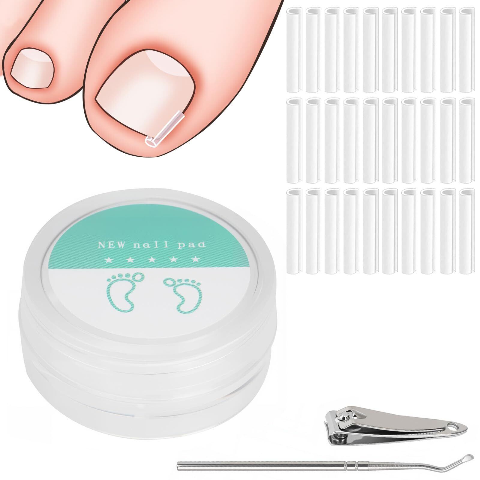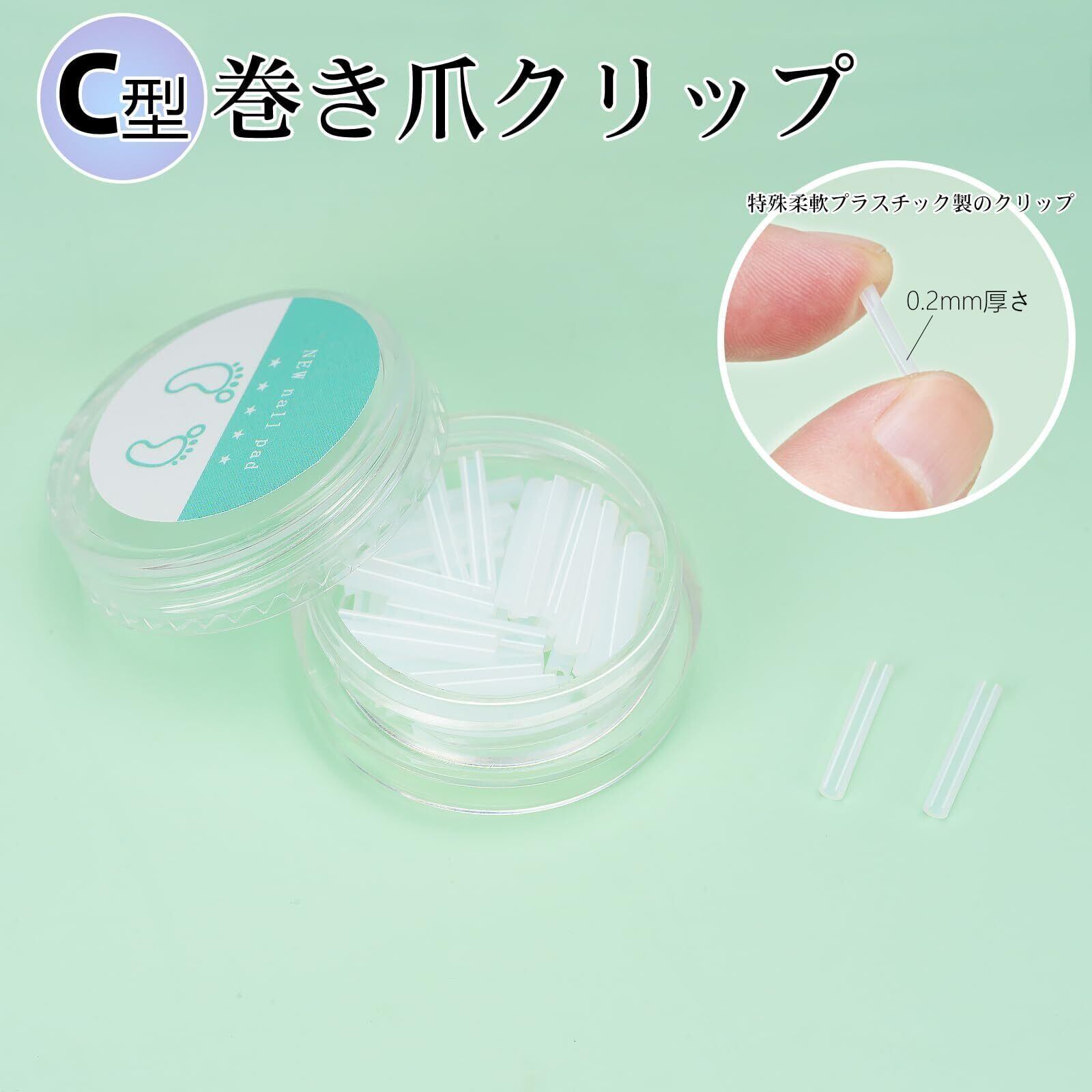 【商品説明】セット内容:クリップ×30、ネイルケアツール×1、爪切り×1。開口部デザインの巻き爪クリップはサイズを自由に調整可能で、様々な爪に対応でき、効果的な痛み止めアイテムです