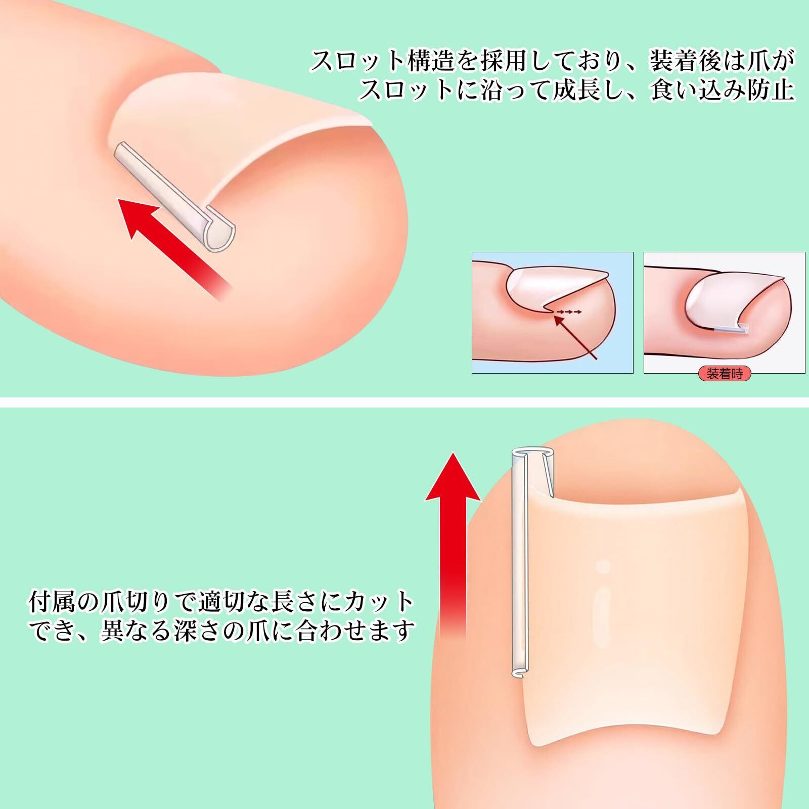 【商品説明】セット内容:クリップ×30、ネイルケアツール×1、爪切り×1。開口部デザインの巻き爪クリップはサイズを自由に調整可能で、様々な爪に対応でき、効果的な痛み止めアイテムです