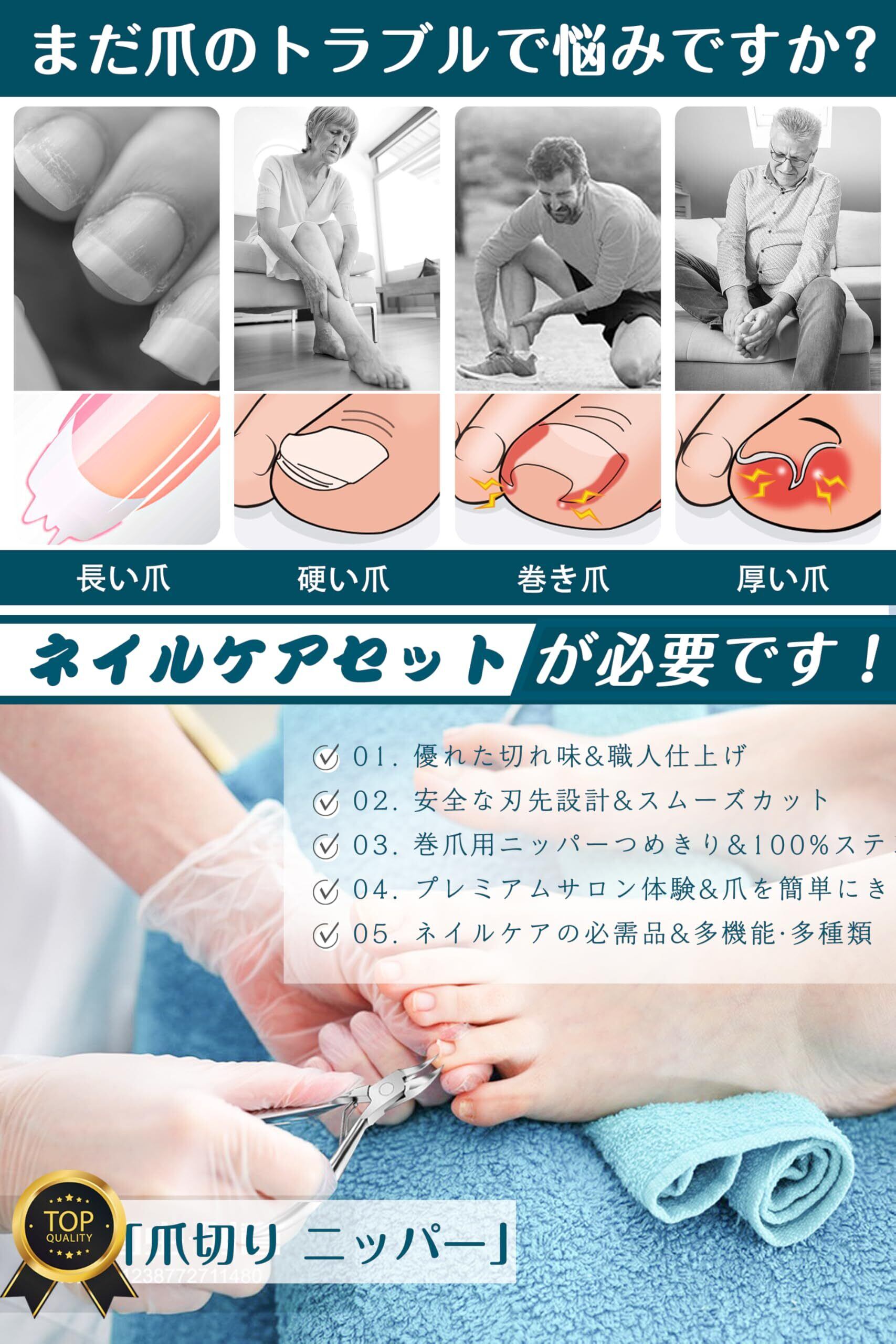 Justit 爪切り ニッパー 切れ味 ネイルケアセット 足用 巻き爪用爪切り ネイルニッパー つめきり ニッパー ステンレス製 手足両用 省力化 防錆 変形爪/巻き爪/硬い爪//厚い爪/陥入爪など様々な爪に適用 高齢者ギフト/男性/女性用 携帯便利/