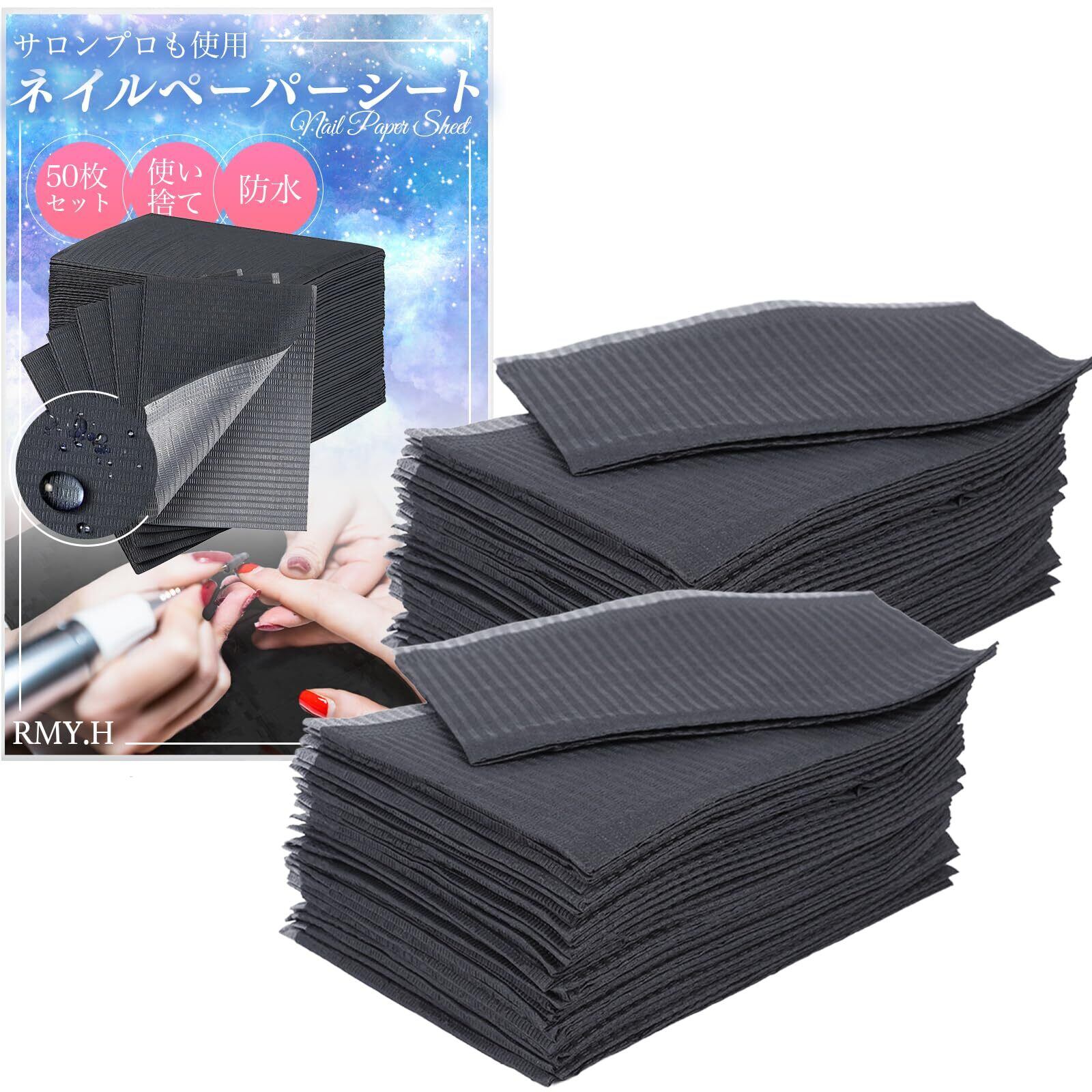 ネイルペーパーシート 防水 ネイルマット 使い捨て ネイル施術マット サロン用 机保護 ネイル検定 グッズ 25枚/50枚 (ブラック50枚)