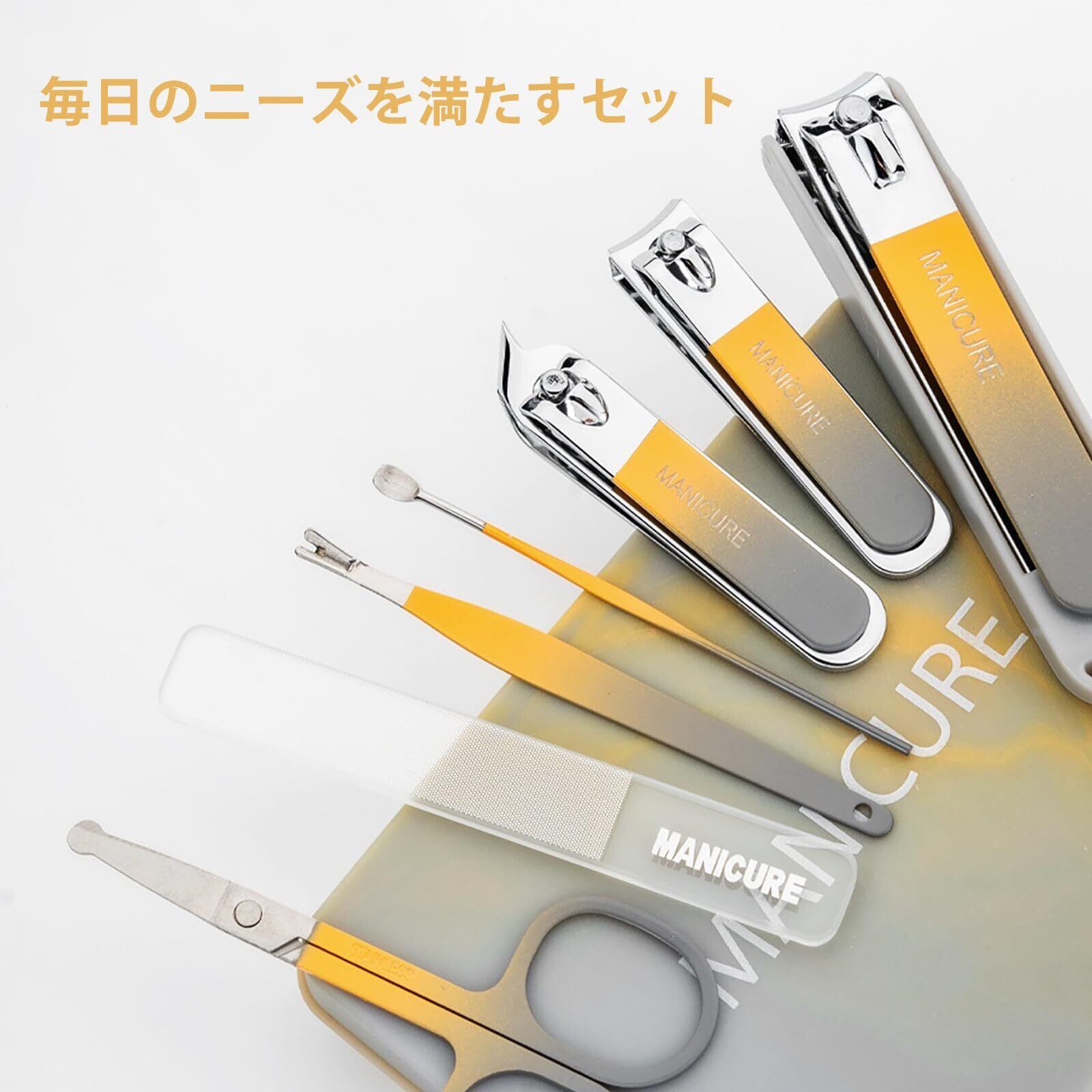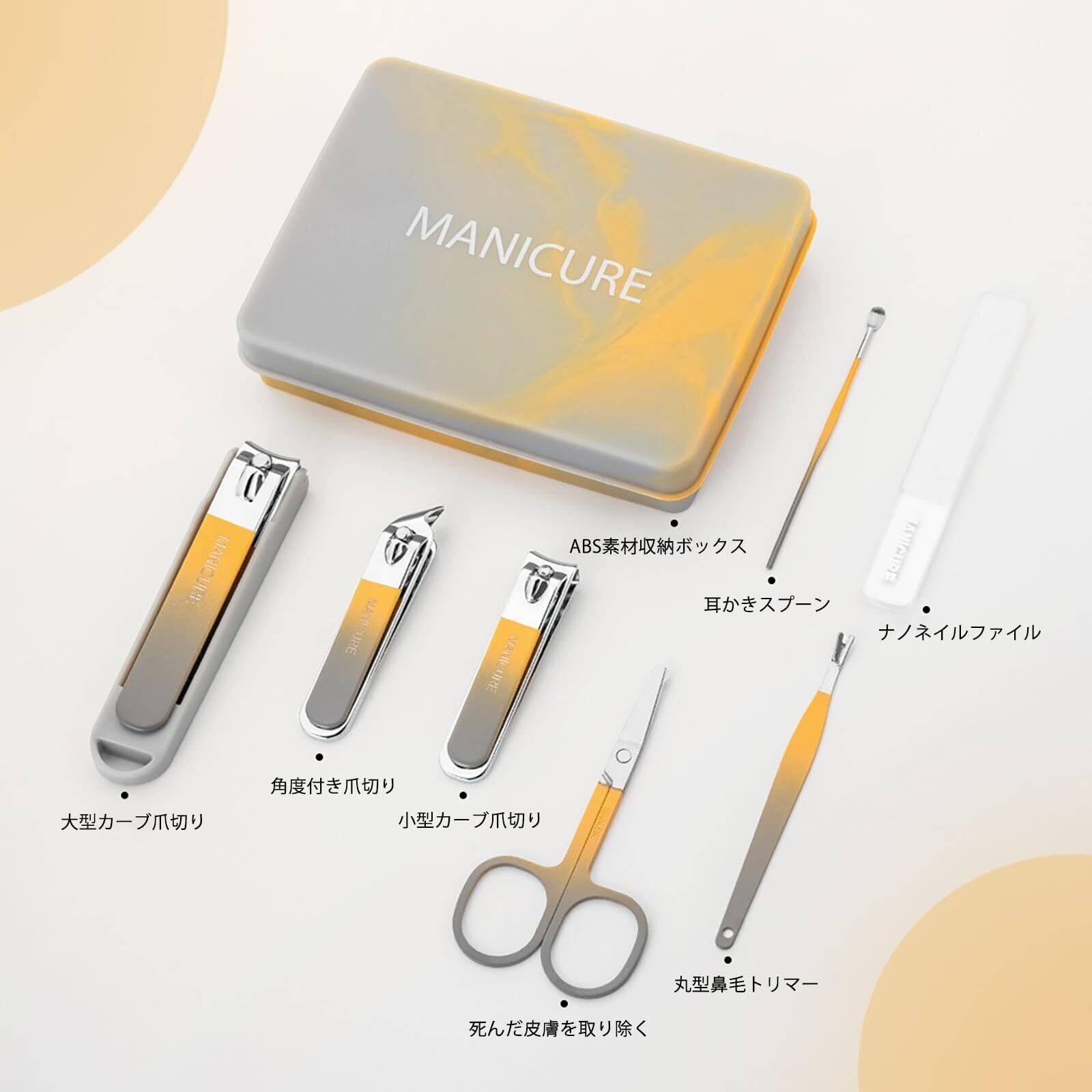 7点 ネイルケアセット 多機能 携帯便利 男女兼用 爪切りセット (大・小・斜め) 眉毛ハサミ 爪やすり 耳かき 死皮推し ABS収納ケース付 グルーミング マニキュア ペディキュア 旅行用 ギフト (ラーヴァイエロー)