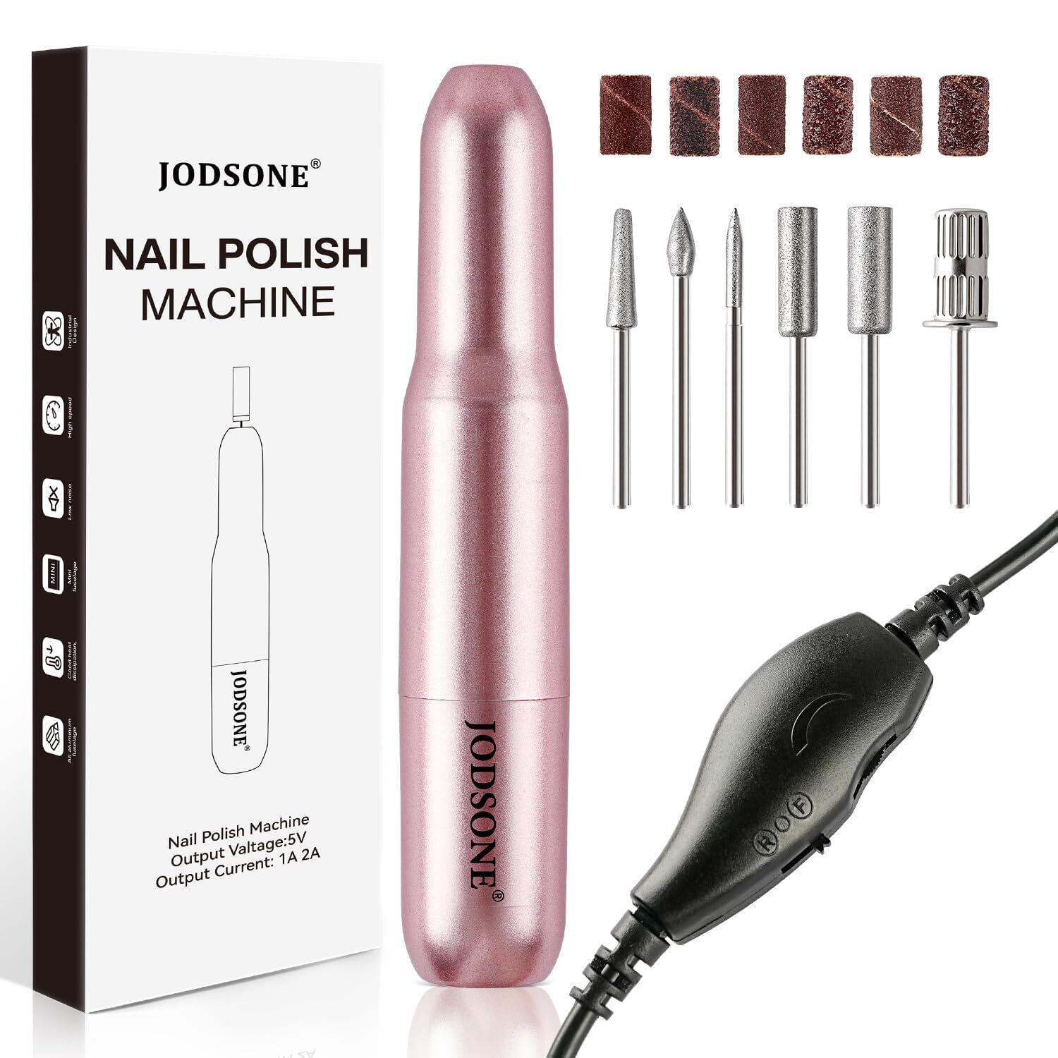 JODSONE 電動USBネイルドリル アクリル&ジェル用 14000RPM ポータブルネイルファイル Eファイルセット ネイルドリルビット 研磨バンド付き ピンク