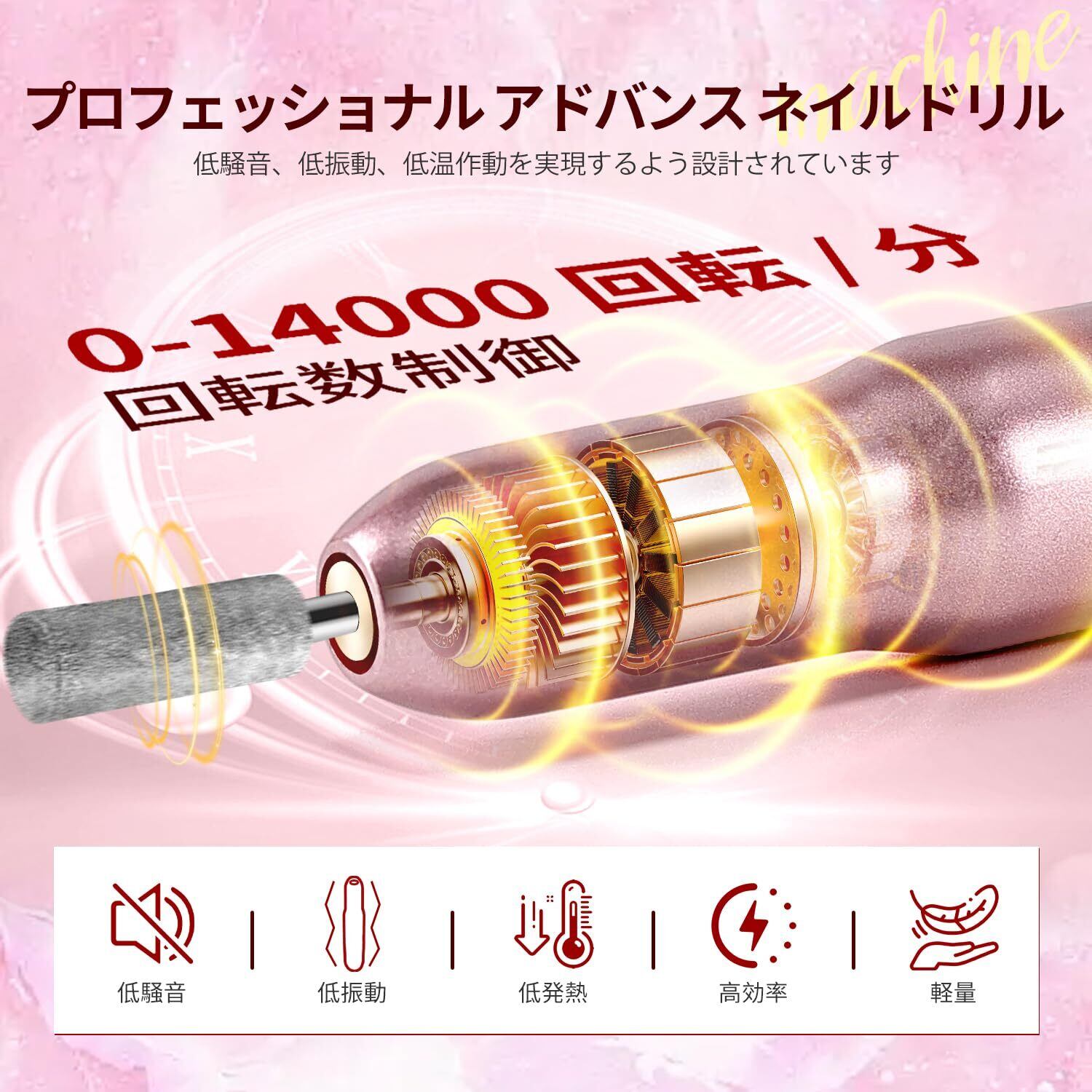 低騒音・低発熱:静音設計で発熱も少なく、快適なネイルデザインを実現します。